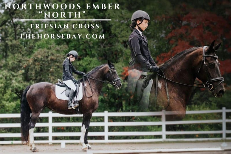 OPEN BIDDING ON THEHORSEBAY,COM. SALE ENDS ON 02/05. More information is available on the website, including an UTD vet inspection, Coggins, video, images, and the owner's contact information to ask questions, request information, or make arrangements to come to visit. 2014 Registered FSHR Mare | Friesian Cross | 15.3hh North is a stunning 2014 Friesian Cross mare, registered with the Friesian Sport Horse Registry (FSHR) and standing at 15. 3hh. With her flashy color and four white socks, she’s not only a head-turner but also an absolute dream to ride. Renowned for her exceptional safety and reliability, North is the perfect partner for riders of all ages and experience levels. This summer, a talented 10-year-old rider successfully showcased her in Intro C, a testament to her gentle nature, adaptability, and steady demeanor. Currently schooling at 1st level dressage, North is progressing beautifully and shows a confident, willing attitude in every ride. Her smooth, comfortable gaits make her a joy to ride, whether in the arena or out on the trail. Speaking of trails, North truly shines here—she’s an absolute dream, handling new environments with calm confidence. With her solid foundation, remarkable temperament, and eagerness to please, North is ready to become a cherished partner for any rider looking to advance their skills or enjoy a trustworthy, steady companion. Don’t miss the opportunity to meet this exceptional Friesian Cross mare—she’s one of a kind!
