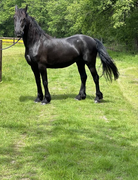 METTE MARE V.D TERPEN est une superbe jument Frisonne plein papier, née en 2012. Très gentille et proche de l’homme, elle a déjà pouliné deux fois sans difficulté. ✨ Modèle harmonieux ✨ Bonne mère ✨ Caractère doux et facile ✨ Manipulée, respectueuse Si vous souhaitez la voir vous pouvez nous joindre directement sur WhatsApp au numéro +33 7 56 82 93 95 pas de blague s’il vous plaît.