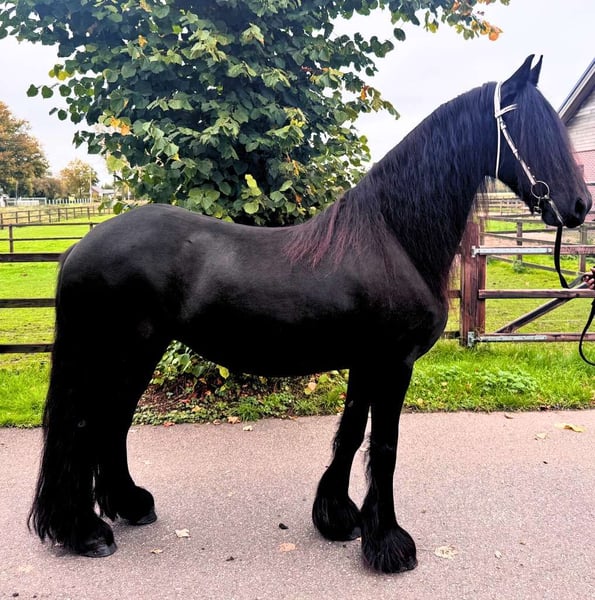 Marian L.W. ist eine 13-jährige Stute mit vollem Papier, Reinder 452 x Gjalt 426. Sie ist eine äußerst zuverlässige Zuchtstute, die jedes Jahr mühelos tragend wird und problemlos Fohlen aufzieht. Ihre Nachkommen erzielen regelmäßig Erst- und Zweitplatzierungen bei Fohlenbewertungen. Derzeit ist Marian tragend von Elger 536, voraussichtlich Mitte April 2026. Sie ist fruchtbar, freundlich im Umgang und ideal für Züchter, die nach einer bewährten Zuchtstute suchen. Hinweis: Es besteht eine kleine Anmerkung bezüglich der Sprunggelenke, weshalb sie vor allem als Zuchtstute geeignet ist.