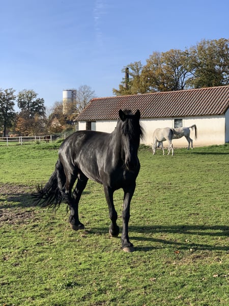 Neske vom Coenenhof ist eine 13-jährige Friesenstute, geboren am 29. Mai 2012, und 1,64 m groß. Sie ist seit 2020 in liebevoller Obhut und ein echtes Herzstück. Neske ist im Umgang absolut brav, lässt sich problemlos verladen und achtet besonders auf Kinder. Sie versteht sich gut mit anderen Pferden, ist aber eher ranghoch und übernimmt gerne die Führung. Leider ist sie nicht reitbar, da sie an Kissing Spines und Headshaking leidet und zudem ein starkes Sommerekzem hat. Für sie wäre ein Platz an einem Ort mit weniger Fliegen und Mücken ideal, zum Beispiel in der Nähe der Ost- oder Nordsee. Sie ist eingefahren und könnte nach etwas Training wieder auch für eine Kutsche genutzt werden. Wenn du ein liebevolles, ruhiges Zuhause für Neske hast, melde dich gerne!
