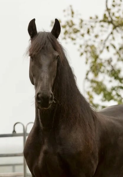 Friendly, attractive 16-year-old riding mare from a premium dam line, by Falbe348/Teunis332, born on April 26, 2009, for sale. All papers available. This elegant black mare impresses with her height of 158 cm and her classic, baroque build. She is also suitable for breeding, having already foaled two foals and proven to be a loving and caring mother. Emma from Lindenbaum is characterized by her friendly and open-minded nature. She is healthy, regularly vaccinated, dewormed, and has up-to-date dental care. She loads easily into a trailer, is well-behaved at the vet and farrier, and is familiar with trucks, tractors, and water. In the herd, she is absolutely sociable. Emma is accustomed to both box and open stall housing and is barefoot. If you are interested in this exceptional Friesian mare, I look forward to hearing from you.