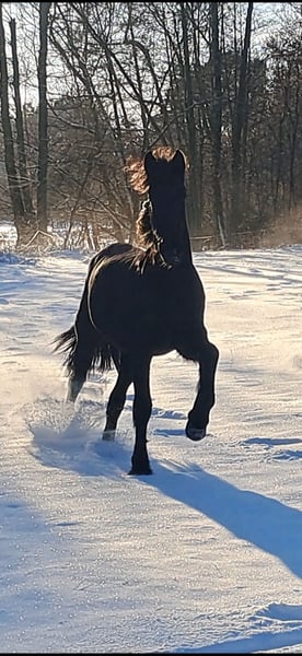 Zum Verkauf steht eine vielversprechende Friesen-Stute, geboren im Jahr 2024. Mit ihrem eleganten glänzenden Rapp-Fell und einer Stockmaß von z.z 153 cm ist sie ein echter Blickfang. Die junge Friese ist bestens für die Freizeitgestaltung geeignet und zeigt bereits jetzt ein angenehmes, freundliches Wesen. Sie ist gut sozialisiert, artgerecht aufgezogen und besitzt ein vielversprechendes Fundament für eine zukünftige vielseitige Karriere. Ob für den Freizeitsport oder als liebe Begleiterin im Alltag – diese Stute bietet eine tolle Basis für ambitionierte Reiter, die Wert auf ein charakterstarkes und charmantes Pferd legen.Kein Notverkauf und wird nicht verschenkt.