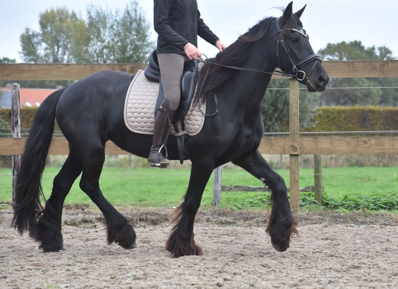 Bloedmooie, goudeerlijke 100 % correcte Friese dame Hier is ze dan: Marina! ( doopnaam Maria) . Aan haar goudeerlijke oog zie je al dat deze dame superbetrouwbaar van karakter is. Dit is een van de weinige paarden waar nu werkelijk NIKS op aan te merken is . Super eerlijk, rustig en lief. Ze heeft 3 super correcte, verheven maar toch ruime gangen, waarmee ze zeer geschikt is voor de sport. Ze is in bezit van een recent keuringsrapport inclusief bloedafname, waarmee ze is goedgekeurd zonder maar enige aanmerking, voor de sport! Ze is totaal vrij van gebreken. Ca 158 m hoog nu. Marina is geboren 5 mei 2021 in Spanje ! In Nederland heeft ze een veulen gehad. De mensen hebben gekozen om het veulen te houden, en zo mag Marina naar een nieuwe lieve baas. Ze is bij hen betuigd voor de koets, zie het filmpje. Wij rijden haar dressssurmatig en recreatief en dat gaat super, ze heeft nog geen pas verkeerd gezet. Dit is een zwarte parel. Een uit duizenden. Prijs : € 9750,- incl. merkzadel en hoofdstel