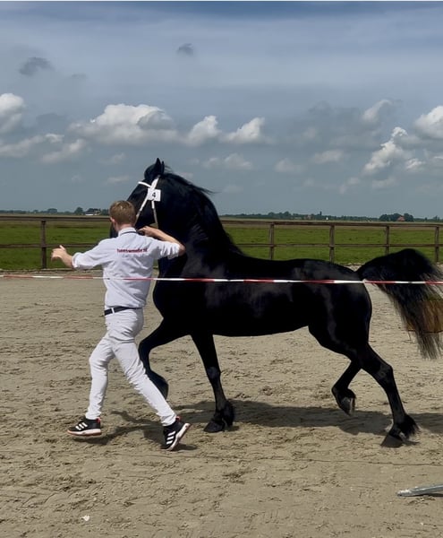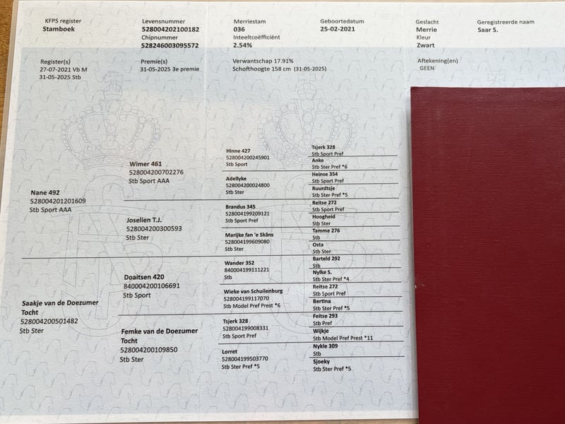 Saar S. een 4 jarige stamboek merrie van Nane 492 X Doaitsen 420. Deze merrie is nog niet zadelmak maar al wel aan de longe en in de dubbele longe. Pakt het werk goed op. Merrie meet ongeveer 1.60. Is dit jaar stamboek gebleven maar wij geloven dat zij absoluut ster waardig is en een heel fijn sportpaard kan worden.