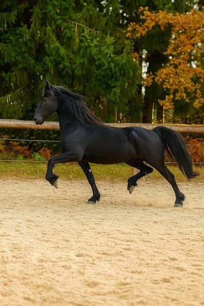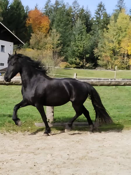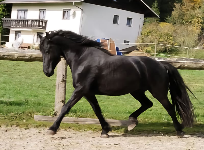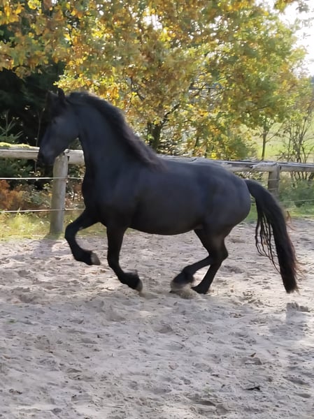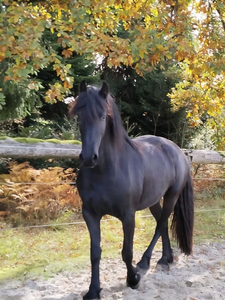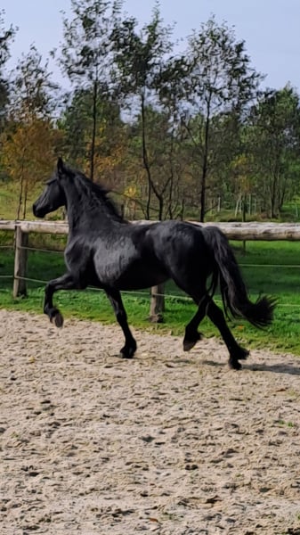 Vanda is a 3.5-year-old Friesian mare with excellent KFPS lineage (Eise 489*Onne 376). Her gentle nature and lovable character leave nothing to be desired. She is a horse with charm and charisma, very close to humans. Vanda has correct conformation and good movement; she is resilient and clear-minded. She would also be of interest for breeding purposes. Currently, Vanda measures 16.1 hh. She is lunged according to her age and is a quick learner who always aims to please. She is familiar with both paddock and box stabling. A home with a family environment is preferred.