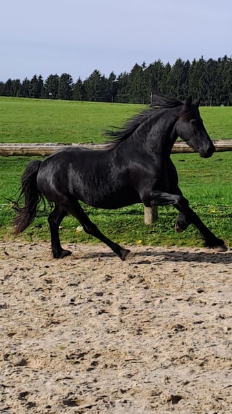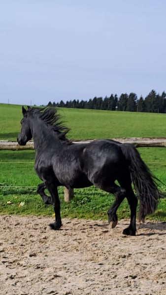 Vanda ist eine 3.5 jährige Friesenstute mit bester KFPS Abstammung (Eise 489*Onne 376) Ihr sanftes Wesen und ihr lieberswerter Carakter lassen keine Wünsche offen. Ein Pferd mit Charme und Charisma das dem Menschen sehr nahe ist. Vanda hat eine korrektes Exterieur und gute Bewegungen, sie ist nervenstark und klar im Kopf. Vanda wäre auch interessant für die Zucht. Aktuell ist Vanda 1.62 m Dem Alter entsprechend anlongiert, Eine Stute die schnell lernt und immer gefallen möchte. Sie kennt Offenstall und Box Lebensplatz mit Familienanschluss erwünscht.