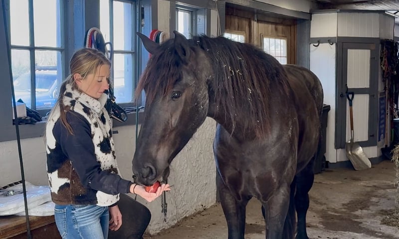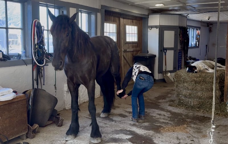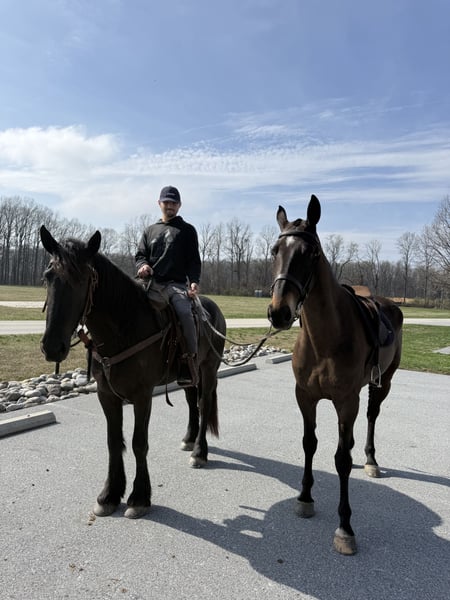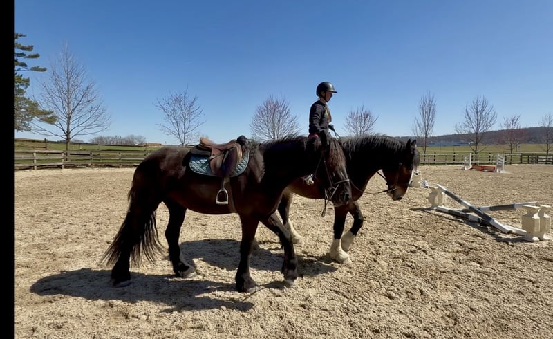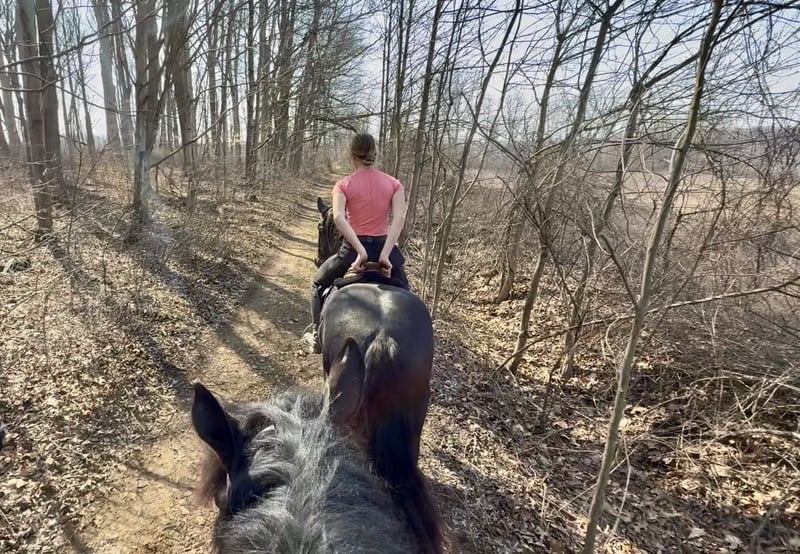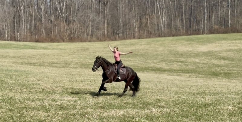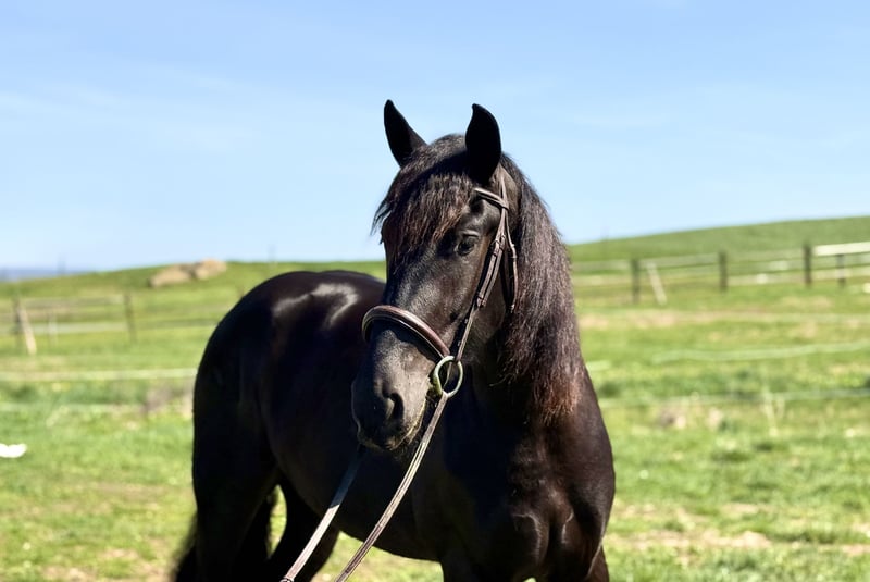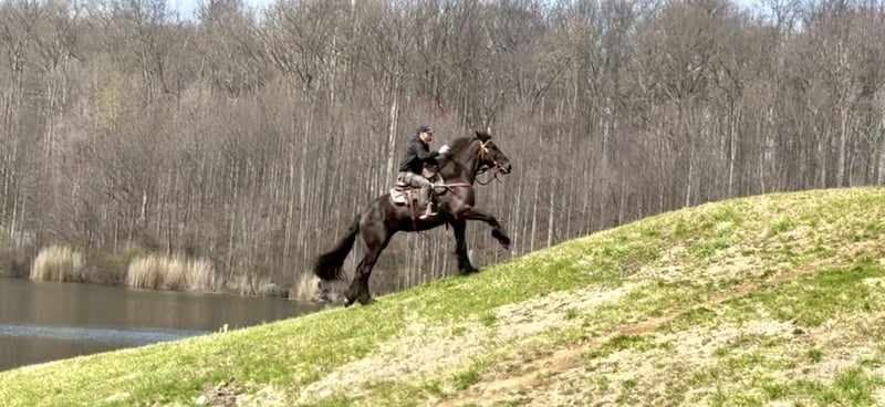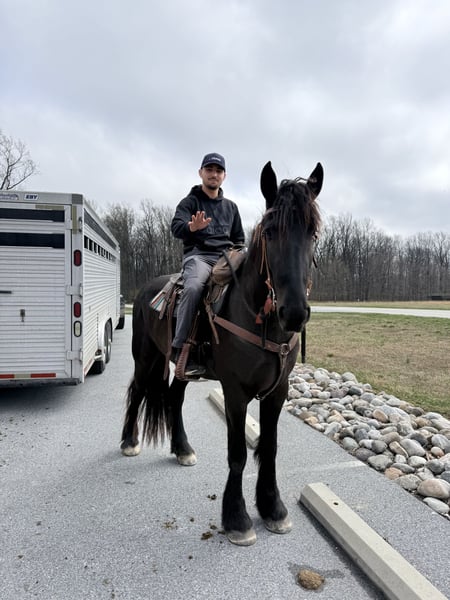 ⚜️𝐭𝐡𝐞 𝓔𝓵𝓲𝓽𝓮 𝐒𝐩𝐫𝐢𝐧𝐠 𝐂𝐥𝐚𝐬𝐬𝐢𝐜⚜️ Happening now thru MONDAY | APRIL 20th - Available EXCLUSIVELY on HorseBid's website! For more details and to register visit: www.Horsebid.com CONSIGNOR CONTACT: CM Farms 717-875-2061 LOCATION: Gap, PA BREED: Friesian/Perch REGISTERED: No REGISTERED NAME: Georgia COLOR: Black HEIGHT: 16 AGE: 4 GENDER: Mare HUSBAND/ FAMILY HORSE DELUXE Meet ✨Georgia!✨ If you’re looking for safe, reliable, the type of horse you can truly trust putting anyone on--don’t miss out on this girl! She is an old soul. “Georgia” (more fondly known around the barn as Bess) is hands down the most people oriented, kid loving, solid citizen we have. This black beauty is a 16-16.1hh, Friesian/Perchx, mare. At the age of four, you might expect some shenanigans- but not with this girl. She carries herself with unflappable confidence, grace, and wisdom well beyond her years. She is the ultimate family/guest horse, whether you have the kids around, or your putting the husband on for his first ride, she’s slow, reliable, and does not have a single mean bone in her body. This girl has a brain that’s rare, hard to come by, and really something special. 💕 On the trail, Bess is the go to for the inexperienced or less confident riders. She’s the type of horse you can pony off another horse with a kid on, or put anyone on and trust that she’ll just follow along. She goes where she’s pointed, whether that be creeks, river, open fields, or bushwhacking through the thicket- she’s always game, and always happy to do her job. There’s nothing that gets under her skin! She’s not winning any races but she’ll follow along happily all day, or step up and go through the scary stuff when the others falter. She has self confidence, an easy way of going, and she’s just a pleasure to have around. In the ring, Bess is a good girl, steady and quiet. She’s never in a rush, never upset, and always willing. She has a lovely uphill way of going, she’s more of a push, and one that will definitely teach to keep leg on! She has a nice walk, trot and canter both ways, and she’s simple and easy. She rides both Western and English, and will even mosey around bareback if she’s asked! She’s been desensitized to everything from traffic and equipment to the tarp dogs the ball- and has pretty much seen everything in be-tween! Her past family even used her to mow the lawn! If that doesn’t tell you the type of brain this beautiful lady has, I don’t know what will! She’s incredible in every way. On the ground, Bess keeps her quiet and sweet demeanor, and she has a big personality! She loves scratches and will even make faces! She comes equipped with a little mustache, a fun curious personality, and most importantly- great ground manners. She stands quiet as a mouse to groom bathe and tack up, and she loads in and out of the trailer quietly. She loves kids, and even loves men so much- she might steal your man’s affection! Everyone that meets her loves her, she’s a complete lovebug and sweetheart with zero vices, and hair for days! If you’ve always wanted a Friesian, but need one with a brain- here she is! We love this girl and can’t wait to see her future. ☺️