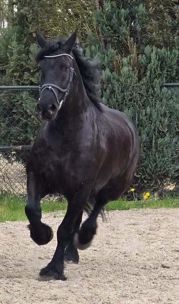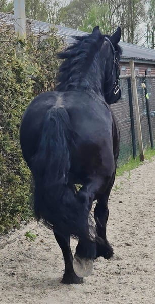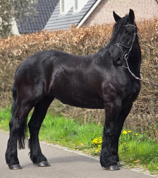 Te koop aangeboden: prachtige barok type Friese merrie 2021) Deze imposante Friese verschijning is een echte eyecatcher met Haar barokke bouw, lange manen en chique uitstraling. Met een stokmaat van ca. 167 cm is ze ideaal van formaat voor zowel recreatief als sportief gebruik. Ze is braaf en betrouwbaar in de omgang en beschikt over een fijn, werkwillig karakter. Onder het zadel laat ze zich netjes rijden en is ze fijn te bewerken, zowel in de bak als buiten. Ook in het verkeer toont ze zich nuchter en zeker. Daarnaast is ze goed braaf voor de koets en toont ze zich daar rustig, stabiel en meewerkend. Hierdoor is ze uitermate geschikt voor zowel mennen als rijden. Kortom: een veelzijdige Friese paard met uitstraling, karakter en kwaliteit, geschikt voor een ambitieuze amateur of een liefhebber van het Friese ras. Voor meer informatie of een proefrit bent u van harte welkom om contact op te nemen.