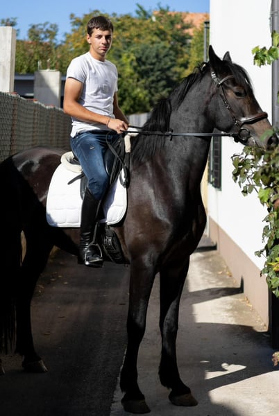 Mare for sale, Friesian × KWPN cross, born in Slovenia. Turned 5 years old on April 2, 2026, height 171 cm. Studbook registered (main book). Regularly vaccinated, never shod, consistently barefoot trimmed. Has participated in various events, goes out alone on trails, accustomed to living in a herd and in a free-run stable. Loads into a trailer and is comfortable with water. She is extremely well-mannered and kind-natured, very calm and easy to handle. She still needs a bit more experience under saddle, but with a few more miles she could be suitable for a beginner or a child. Price: €5000, adjustment possible as a good home is the priority. Located in Croatia ( Dugopolje). For more information, WhatsApp or call: +385 91 782 3581