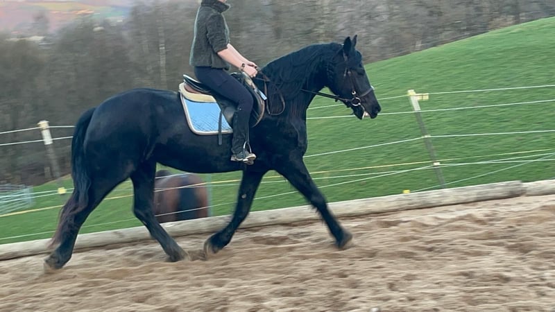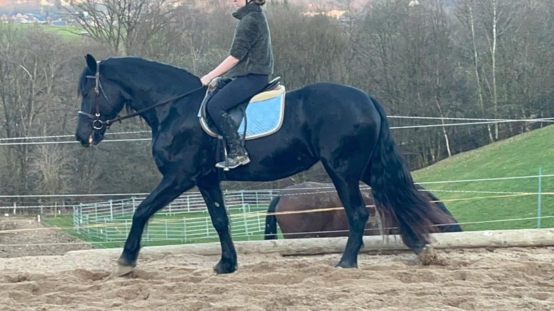 Czarna klacz rasy friesian z domieszką