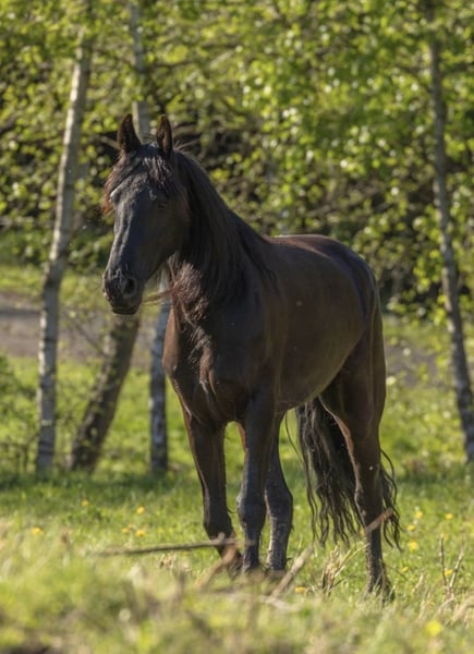 23.03.2020 Stute Rappe 1,59 m Chip-Nr. 259888 Nicolet ist eine bildschöne, elegante Friesenstute mit nettem Charakter und guten Bewegungen. Beim Vorbesitzer wurde sie bereits freizeitmäßig im Gelände in den Grundgangarten geritten. Hierbei ist sie artig, mutig, gut regulierbar und unkompliziert. Im Umgang ist sie freundlich und dem Menschen zugewandt. Wir haben Nicolet über den Winter/Frühjahr 2024/2025 noch weiter unter dem Sattel ausgebildet und in diesem Jahr ist sie regelmäßig bei Gelände- und Wanderritten hervorragend mitgegangen. In der Bahn tut sie sich sehr schwer und ist dressurmäßig nicht ausgebildet. Aber im Gelände lässt sie sich prima in der Gruppe reiten, ist fleißig, aber gut regulierbar und beteitet ihren Reitern viel Freude. Sie ist eine elegante Schönheit und sollte nicht mehr als 65 kg tragen. Leider mussten wir feststellen, dass Nicolet den ständigen Reiterwechsel und den Trubel auf dem Hof nicht so gut findet. Daher haben wir uns entschieden sie in gute Hände zu verkaufen. Im Umgang ist sie prinzipiell freundlich und schmusig, zeigt ihren Unwillen jetzt aber immer mehr, wenn man in ihre Box geht und sie “nervt”. Sie ist ein 1-Personen-Pferd und braucht eine Bezugsperson. Wir haben den Preis jetzt deutlich herabgesetzt und hoffen den “richtigen” Menschen für sie zu finden. Nicolet ist ein schickes Mädchen/Damenpferd. Für die dressurmäßige Ausbildung benötigt sie einen erfahrenen Reiter, Geduld und Zeit. Sie kann aber jederzeit im Gelände Probe geritten werden. Bei Fragen oder Interesse gerne melden unter 015202059784