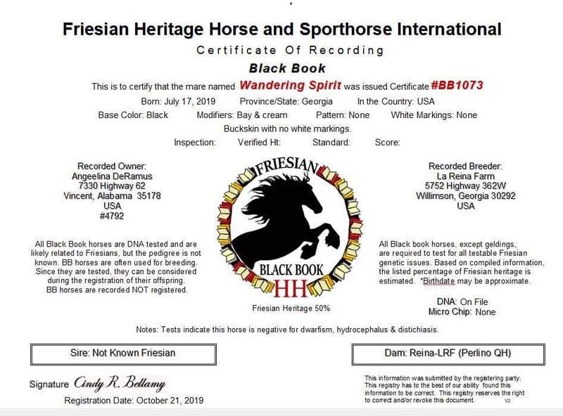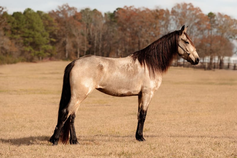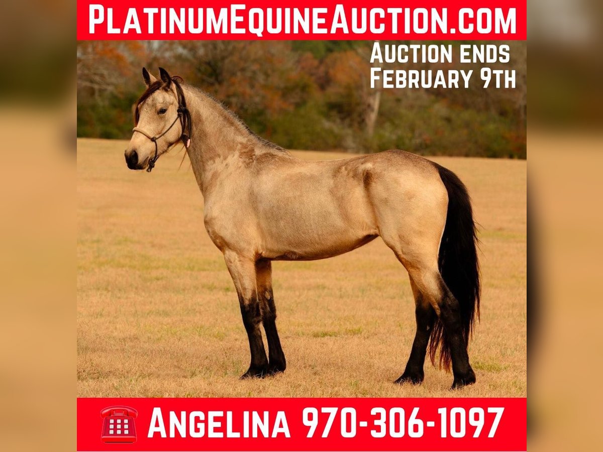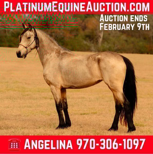 ONLINE AUCTION Place your bids at www.PlatinumEquineAuction.com Starting Bid $3500 Auction ends February 9th, 2025 Need a new saddle? Check out White Rock Saddles on our website or Facebook! Wandering Spirit is a 6 yr old Friesian Sport Horse buckskin mare. She is confirmed through DNA to be 50% Frieisan and 50% Quarter Horse. She stands just at 15hh, 996lbs with the larger bone structure of a friesian along with the thick draft mane and tail. She is an easy keeper and lives on grass hay and alfalfa, though during heavy training she does well to have a couple scoops of feed. She had her first colt in 2024 which was a big boy with a Friesian/Clydesdale cross sire. She birthed easy and fast especially with such a large baby. She does well with AI and will stand in or out of stocks or for ultrasounds. She is currently open. She was an excellent mom, ok with people handling her baby and also in a herd of other mares and babies. Excellent milk production! She is laid back in the pasture with the other horses. She likes to eat first but wont fight for it. She is easy to catch, most of the time she is first at the gate. She stands cross tied to be bathed and will stand tied to be groomed and braided. Though her hooves are on the larger side shes never needed to be put in stocks to be trimmed. She has always been barefoot with no issues on a trail, in the pastures or in an arena with soreness. She will load and unload perfectly and stands quiet in a trailer or tied to the side. She loves attention but will maintain good ground manners. She has an easy, laid back riding style. Was trained in western but can easily be english as well. She excels over any and all obstacles outside, through water, rides well in an arena and has even been in a Christmas parade and hasn’t spooked once or offered to buck. She has beautiful movement and willingness to learn a new skill. She would be the perfect partner for the trails or in the show ring. She rides in a standard western saddle as her barrel isn’t as wide as a draft. She is the perfect all around horse! Located in Vincent, AL. Contact Angelina DeRamus 970-306-1097 with any questions or to schedule a ride. ONLINE AUCTION Place your bids at www.PlatinumEquineAuction.com Starting Bid $3500 Auction ends February 9th, 2025 Need a new saddle? Check out White Rock Saddles on our website or Facebook!