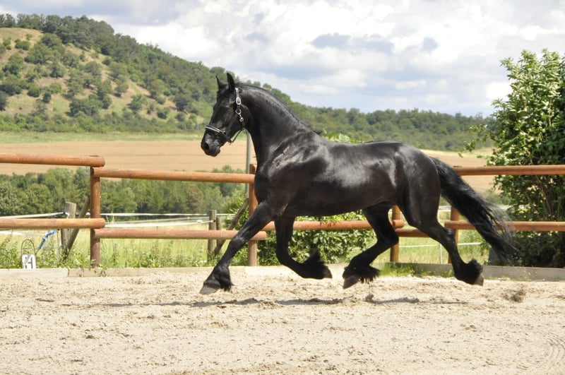 Una yegua Friesian muy cariñosa y grande de los Países Bajos, con un hermoso y largo flequillo. Tiene un físico correcto, una cabeza pequeña y preciosa, y su carácter es simplemente un sueño. No muestra en absoluto un comportamiento típico de yegua, es un animal muy agradable. En su trato es extremadamente dulce, tranquila y segura de sí misma. En el trabajo, tiene una actitud diligente y siempre trabaja bien, además de ser valiente. Ha sido montada en los tres aires básicos (pase, trote y galope). Por tanto, si buscas una yegua excepcional y única, aquí la tienes. Este año tuvo su primer potrillo, que fue muy fácil de manejar. Además, fue una madre muy cariñosa y ejemplar. Por favor, las consultas solo por teléfono.