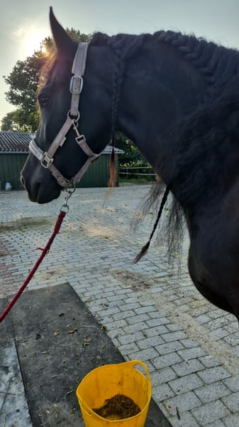 Elegante y distinguida yegua Frisón, nacida en 2017, busca un nuevo propietario Esta hermosa yegua de color alazán es una verdadera vista de ojos y cautiva por su impresionante presencia y su carácter amigable. Con una altura de aproximadamente 1,60 m, ofrece el tamaño perfecto para un uso versátil y es adecuada tanto para actividades de ocio como para el manejo diario. El Frisón es una raza de carácter muy fuerte, conocida por su apariencia elegante y su temperamento agradable. Es muy afectuosa, aunque a veces puede ser algo insegura, por lo que necesita una persona segura y confiada. Está sana, desparasitata y vacunada regularmente, y se encuentra en un estado de cuidado excelente. La yegua es muy polivalente, ideal para paseos largos, excursiones por el campo o para el ocio diario. Sale sin problemas sola al campo. Si busca una compañera de ocio fiable y encantadora, que cautive con su presencia y su carácter amable, esta yegua Frisona es la elección perfecta. Para más información y una impresión personal, no dude en contactarme.
