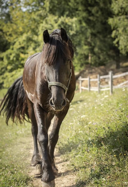 8-year-old Friesian Mare for Sale A very well-behaved Friesian mare is for sale. She is ridden at a basic dressage level and, with some additional work, would be suitable for dressage competitions. She is very calm and reliable on trail rides and is also suitable for children. She loads well onto a trailer and has no issues with showering, farrier work, or daily care. She is an extremely friendly and sociable horse. She has sweet itch (summer eczema), which is well managed with proper care. For sale only to a good home. The reason for sale is moving abroad.