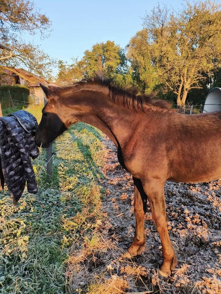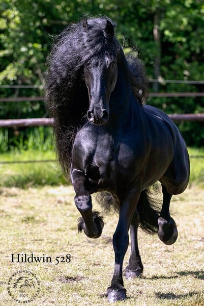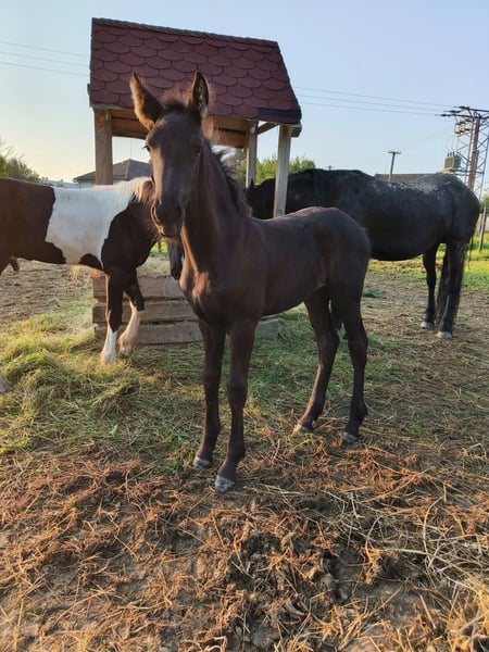 I am offering a beautiful Friesian filly, Éowyn van Pawlowitz. 💕 Éowyn was born on May 25, 2025. This lovely filly has an excellent pedigree — her dam has a full lineage. Éowyn has stunning, high-action movements, an elegant build with a refined head, and a beautifully set neck. She has great potential to earn the Ster title as an adult and moves with natural grace. She will make a wonderful, high-quality horse — suitable both for top-level Friesian or Barock Pinto breeding and as a lovely family horse. She is very kind and well-behaved: used to being led, handled with a halter, seen by the farrier and veterinarian, lifts her legs nicely, and enjoys human contact. She also has great potential for sport, as her dam’s sisters compete successfully in dressage in the Netherlands. Éowyn is by Hildwin 528 AAA x Matthys 504 AAA x Nykle 309. Her dam became the Champion of the 3-year-old mares at the studbook inspection. 🏆 Éowyn pedigree is Stb x Stb Ster Pref *5 x Stb Ster Pref *11 x Stb Ster Pref *5 . The mother missed the title of ster in the keuring by only one point. She already has complete KFPS registration papers, and will be ready to move to her new home in the second half of November. 🏠 The penultimate photo is the mother, the last photo is the father. If you’re interested, please send me a private message — I’ll be happy to share more information, photos, and videos. 🤗