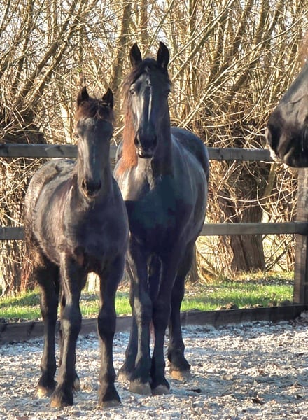 Fries hengsten veulen Maurus 441 x Alwin 469 te koop! Met pijn in mijn hart moet ik mijn super knappe Friese hengsten veulen van 9 maanden oud te koop zetten wegens geen match.😢 Er was mij verteld dat hij geen hengsten gedrag vertoonde maar dit is dus helaas niet het geval. Voor dat ik reacties krijg met je koopt toch een hengst. Van mij mag hij best hengsten gedrag hebben, maar in de vorm die hij nu laat zien is het geen match met mij. Het is verder een super lief beest, knuffelig, heel erg speels gaat graag met zijn speelgoed gooien, en houd van knuffels. Hij vertoont geen agressief gedrag, hij is meer enorm aanwezig en gebruikt zijn gewicht graag. Hij komt van een goeie afstamming, zijn vader is Maurus 441 SPORT AA, de vader van moeder is Alwin 469 Sport Preferent AAA. Op foto 2 staat hij naast zijn moeder. Hij kan super mooi lopen en komt graag naar je toe, hij is erg mensgericht. Hij is ingeënt, gechipt en heeft een stamboek. Voor filmpjes stuur gerust een pb. Inschrijven bij het KFPS mogelijk. Het liefste heb ik zo snel mogelijk een goed huisje voor hem waar hij kan opgroeien en de liefde en opvoeding krijgt die hij verdient en nodig heeft. Dat is voor hem beter en voor mij. Voor de prijs en verdere vragen stuur gerust een pb. DE BELLER IS SNELLER: 0682161631 Heel veel liefs, Ruth & Dylano