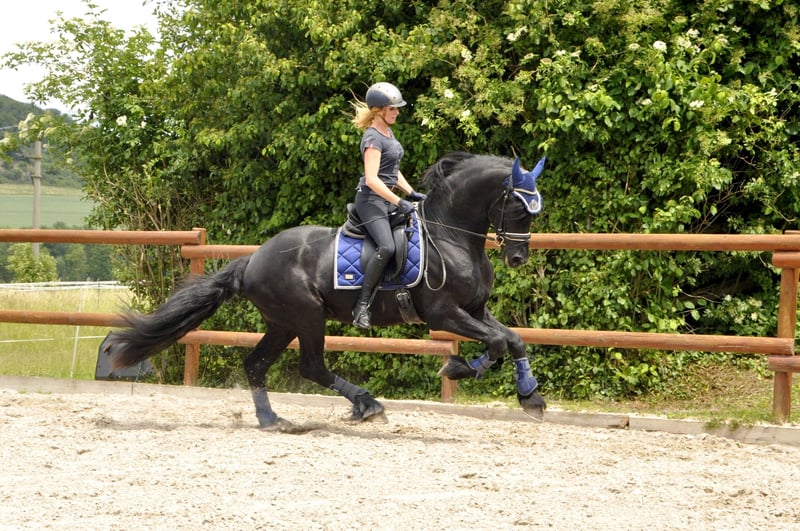 Un magnifique grand Frison avec une incroyable présence et charisme. Il a des mouvements au-dessus de la moyenne, est prêt à travailler et collabore bien. Il a un caractère aimable et convient, en raison de sa volonté d'apprendre et de son attitude au travail, pour le dressage. Il est monté en fonction de son âge et a également été attelé à la voiture. Les demandes doivent être faites uniquement par téléphone !