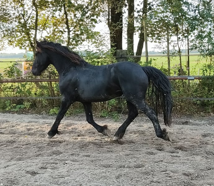 Lernen Sie Tjerk kennen, einen wunderschönen 3,5-jährigen Friesenhengst, der voraussichtlich eine Größe von etwa 1,55 m erreichen wird. Mit seinen beeindruckenden, anmutigen Bewegungen scheint er über den Platz zu schweben. Dieser hübsche Junge liebt Aufmerksamkeit und wir sind sicher, dass er sich darauf freuen wird, mit Ihnen zu arbeiten. Tjerk ist neugierig, lernbegierig und begierig darauf, Neues zu lernen. Es sind nicht nur seine Bewegung und seine Aufrichtung, die ihn zu etwas Besonderem machen; Er ist außerdem stark und robust und wurde mit Sorgfalt und Liebe in einer natürlichen Herde auf den weitläufigen Wiesen von Gestüt Vrijepaarden aufgezogen. Hier genießt er eine gesunde, freie Kindheit im Einklang mit seiner Umwelt. Auf Wunsch kann Tjerk hier noch kastriert werden. Bei Stoeterij Vrijepaarden haben wir eine große Auswahl an Friesenpferden und Barockpintos, die alle mit Liebe und Leidenschaft aufgezogen werden. Unsere Pferde wachsen in großen Herden auf, was zu ihrem sozialen, stabilen Charakter beiträgt. Sie sind alle noch roh, gechipt und haben einen Equidenpass. Kommen Sie gerne vorbei, um sich unsere Pferde anzusehen und das Pferd Ihrer Träume zu finden. Wir sprechen Deutsch, Niederländisch, Friesisch und Englisch. Zögern Sie also nicht, uns für einen Termin zu kontaktieren. Interessiert? Rufen Sie an oder senden Sie eine WhatsApp, wenn Sie ernsthaftes Interesse haben. Wir wünschen Ihnen ein herzliches Willkommen!