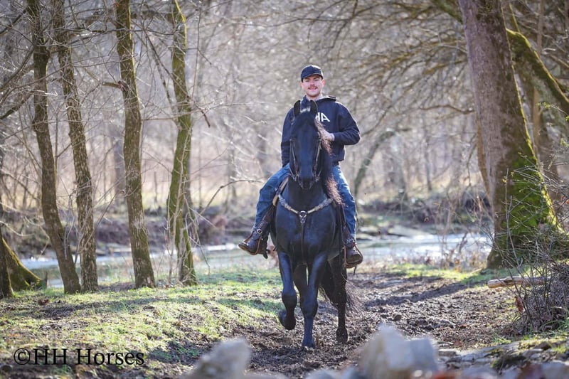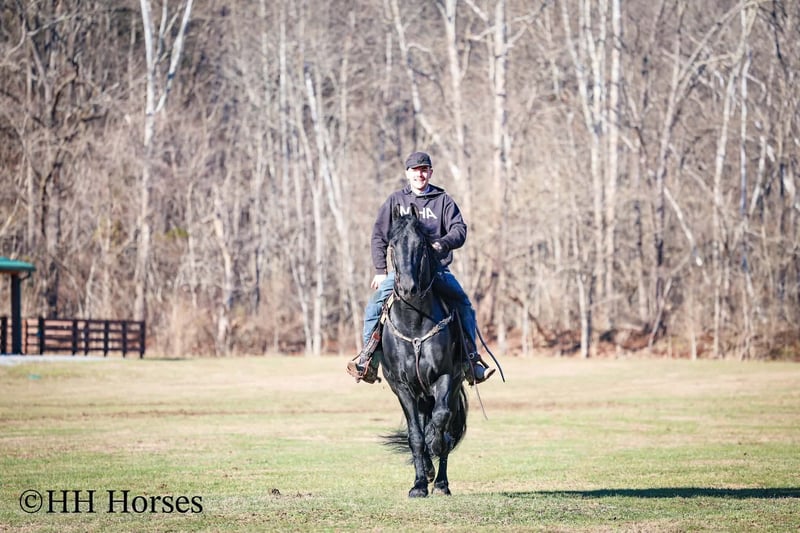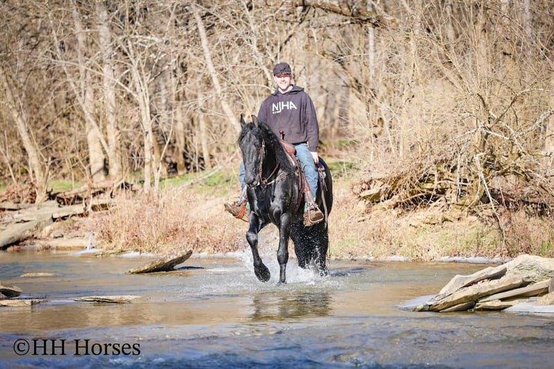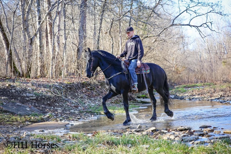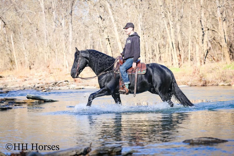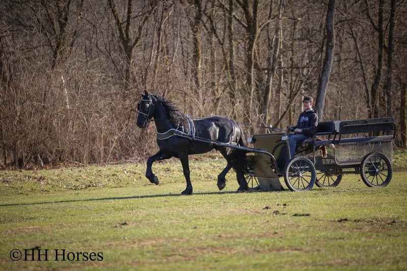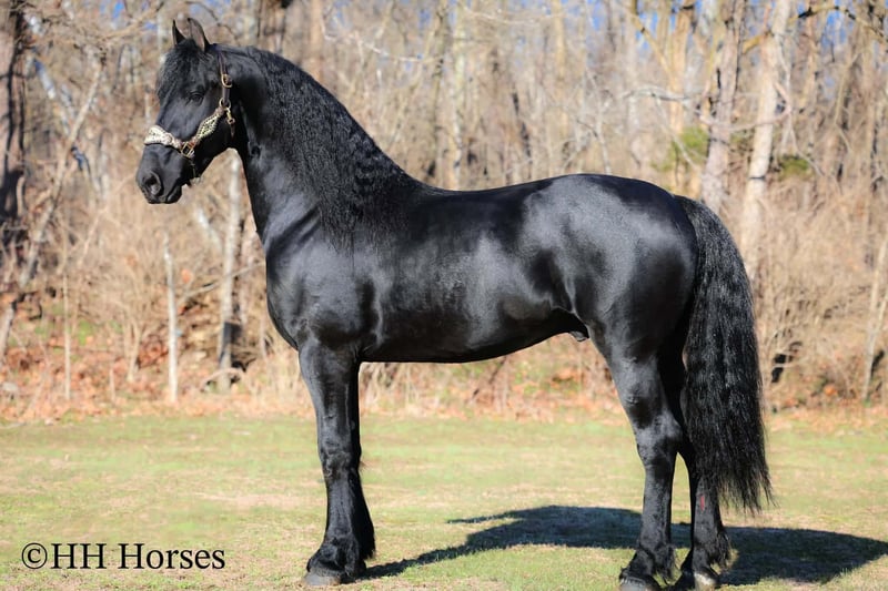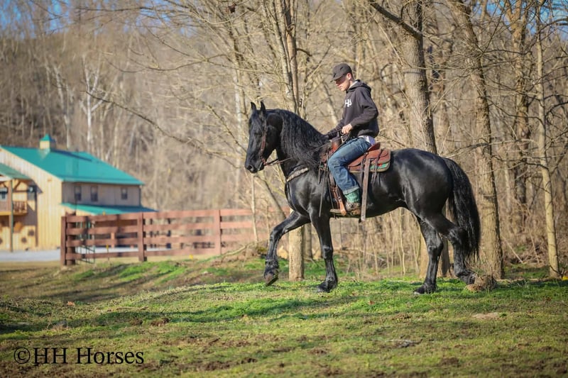 ❤️🔥𝑩𝒆 𝑴𝒊𝒏𝒆 𝐒𝐄𝐋𝐄𝐂𝐓❤️🔥 Happening now thru MONDAY | FEBRUARY 9th - Available EXCLUSIVELY on HorseBid's website! For more details and to register visit: www.Horsebid.com CONSIGNOR CONTACT: HH Horses 304-238-4155 LOCATION: Hillsboro , KY BREED: Friesan REGISTERED: Yes REGISTERED NAME: DOAITSEN'S IMAGE COLOR: Black HEIGHT: 16.2 AGE: 5 GENDER: Stallion This is "DOAITSEN'S IMAGE", a very attractive, handsome, and intelligent REGISTERED PUREBRED FRIESIAN STALLION that is well broke to ride and drive. He is 16.2 hands tall and 5 years old. This stallion has been shown, used in many stallion showcases, won many blue ribbons in the hitch classes, and been shown under saddle successfully as well. He is extremely well mannered for a stallion and has been trail ridden amongst mares and geldings with no fuss. He handles very quietly in the barn even when in very close proximity to other horses. He is a true gentleman with excellent ground manners. He stands tied, loads, bathes, and hauls. He is a proven breeder with a nice foal crop on the ground. He is an own son of "DOAITSEN 420". This nice stallion is very people oriented and he loves attention. He aims to please, will go anywhere you ask him to trail riding, and will lead or follow when riding in a group. He rides out alone with confidence bravely. You can keep him a stud and breed some mares or you can geld him and have a top notch gelding. He is the kind of stallion that makes owning a stallion easy. He is a gorgeous mover, has nice conformation, is smooth to ride, and has lots of action. Here is the chance to raise some spectacular Friesian cross babies and to have a talented, smart, and well mannered stallion. He's a kind horse that is easy to hitch, harness, tack, mount, groom, and ride. The purebred Friesian stallions are hard to find. We Can Help With Delivery Anywhere In The United States. Call or Text Erin at 304-238-4155