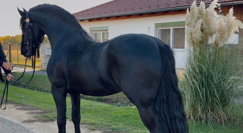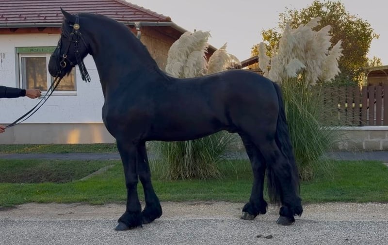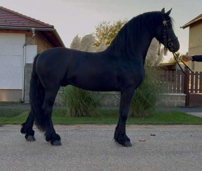 Dieser fünfjährige Friesenhengst besticht durch seine imposante Erscheinung und seine hervorragenden Grundgangarten. Mit seinen 1,70 m Stockmaß ist er ein wahrer Blickfang. Er ist sowohl schmiede- als auch verladefromm und zeigt sich im Straßenverkehr absolut sicher. Er wurde sowohl einspännig als auch zweispännig gefahren, zudem schonend angeritten. Sein ruhiger, braver Umgang macht ihn zu einem perfekten Partner für Sport und Freizeit. Ein wirklich außergewöhnliches Pferd . Bei Interesse kann ich weitere Fotos und Videos schicken.
