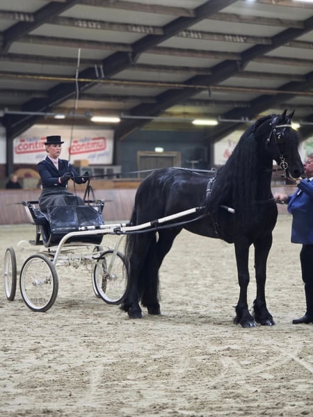 Jensen van the Terpen – Elite 7-Year-Old Friesian Star Stallion. An exceptional Friesian stallion combining presence, power, and refined elegance at the highest level. Jensen represents the rare modern Friesian: expressive, athletic, and extremely reliable in temperament. A true show-stopper with abundant feathering, a powerful front, and three outstanding, expressive gaits with natural balance and suspension. He performs effortlessly and loves attention, making him a standout in any international arena. Highlights: • Dressage up to Z level • Successfully presented at the Royal Friesian Stallion Show, Leeuwarden • Multiple competition wins and placements • Experience in harness sport • Approved stallion selection trajectory Health & quality: • Fully clinically and radiographically approved • Fertility tested (good semen quality) • Ster stallion Pedigree: Out of Kroon mare Mona Lisa van the Terpen, descending from the proven maternal line of Tjalbert 460. A rare opportunity for the serious international buyer seeking a Friesian stallion with both performance ability and elite presence. Available exclusively to a high-end 5★ home / professional sport or breeding program.