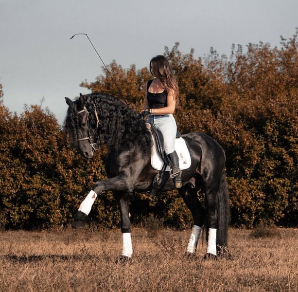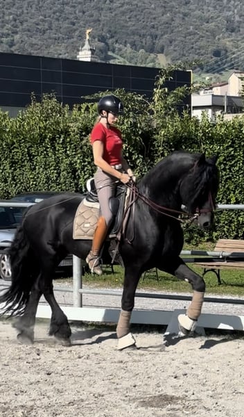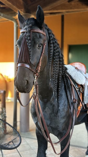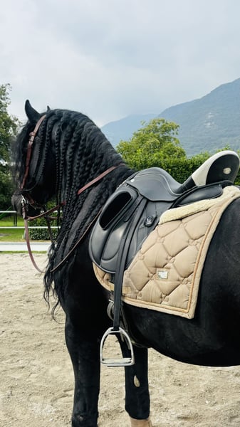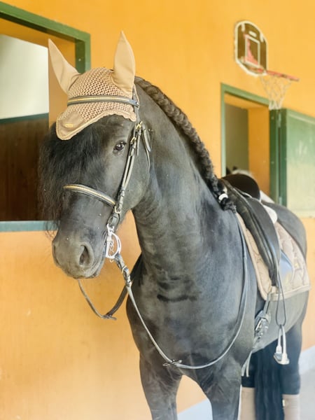 FOEKE VAN DE DEMRO STABLES (JEHANNES 484 X KYRA W.T) Spledido frisone intero ( non sa neanche di esserlo) di 8 anni. Altezza 1.72 al garrese. Cavallo di una bellezza e bontà unica. SANISSIMO, MAI AVUTO UN PROBLEMA DI SALUTE. Adatto a qualsiasi tipologia di cavaliere con un minimo di esperienza. GENETICA IMPORTANTE!! PER INFORMAZIONI; +39 3917059140 (Agata) +39 3513334724 (Fabio) Richiesta; 25.000€