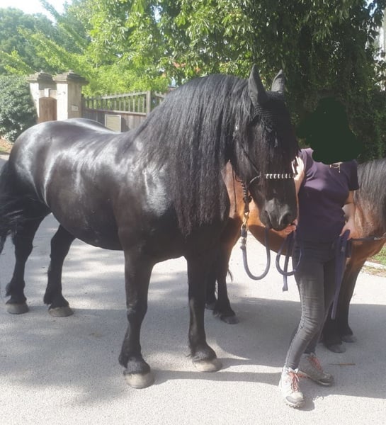Macho caballo de Pura Raza Frisón de 10 años en busca de un jinete experimentado. Es un imponente Frisón de tipo barroco que busca una persona con corazón, sentido común y liderazgo claro. Está montado y muestra motivación en el trabajo en el suelo, siempre que el entrenamiento sea variado. Lo que lo caracteriza: • Carácter: Tiene la mente clara, es muy honesto, atento a la persona y trabaja bien en general, aunque en algunos momentos aún no sabe exactamente cómo canalizar su fuerza y energía. Aquí necesita una mano tranquila y segura. • Requisitos: Requiere una conducción firme y presencia absoluta. • Postura: Es de carácter dominante, de pelo corto, le encanta su libertad de movimiento y solo se entregará en un establo abierto. ¿Quién es adecuado para él? No es un caballo para principiantes. Buscamos a alguien con tiempo y experiencia ecuestre que le brinde seguridad y lo integre como un miembro de la familia. Si te ha enamorado su imponente aspecto y te sientes capaz de asumir la responsabilidad, estaré encantado de recibir tu mensaje. Por favor, cuéntame brevemente sobre ti y sobre el posible nuevo hogar; me pondré en contacto contigo.
