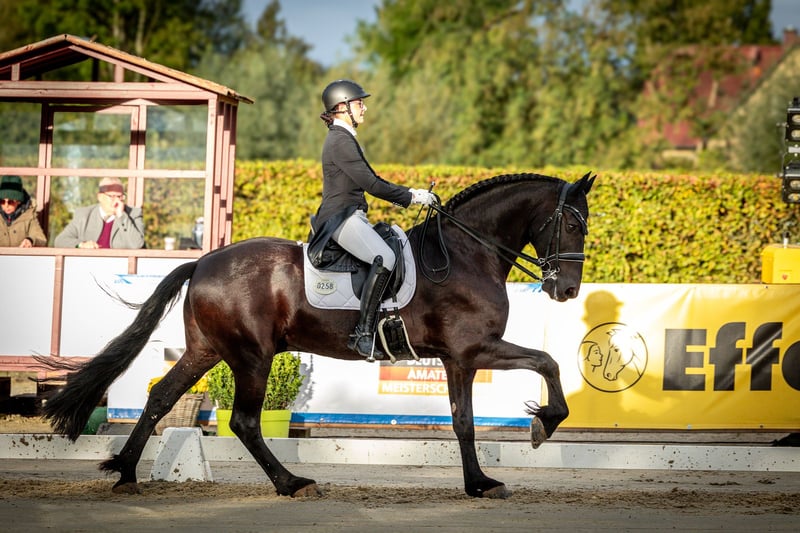Schweren Herzens verkaufe ich meinen selbst ausgebildeten Friesenwallach Odin, da ich noch zwei weitere Pferde besitze und ihm zeitlich nicht mehr gerecht werden kann. Odin ist ein außergewöhnlich tolles Pferd, das die volle Aufmerksamkeit verdient. Ich habe Odin 2,5 jährig vom Friesengestüt Hof Steendans gekauft, wo wir bis heute beheimatet sind. 3-jährig habe ich ihn schonend eingeritten und 4 jährig lief er die ersten drei Turniere. Mittlerweile kann er zahlreiche Platzierungen bis zur Klasse S nachweisen. Wir waren dreimal auf den deutschen Amateurmeisterschaften in Münster Handorf vertreten. Er erhielt vom niederländischen KFPS die Auszeichnung „Elite Sport“. Doch nicht nur in der Dressur überzeugt Odin auf ganzer Linie. Er zeigt viel Talent am Sprung mit guter Manier, arbeitet zuverlässig an der Doppellonge und liebt es im Gelände die Seele baumeln zu lassen oder auch mal Gas zu geben. Odin ist brav im Umgang, selbstverständlich schmiede- und verladefromm und war bislang nie krank oder verletzt. Die Kastration erfolgte im Alter von fünf Jahren, zugunsten einer artgerechten Herdenhaltung. Seitdem steht er problemlos mit Wallachen und Stuten in der Herde. Er kennt Boxenhaltung mit täglichem Weide- oder Paddockgang, stand jedoch nie im Offenstall. Ein Pferd mit großem Herz, toller Rittigkeit, Leistungsbereitschaft und bestem Charakter - ideal für ambitionierte Reiterinnen oder Reiter mit Spaß am Sport und Freizeit gleichermaßen. Bei ernsthaftem Interesse und für weitere Informationen freue ich mich über ihre Nachricht.