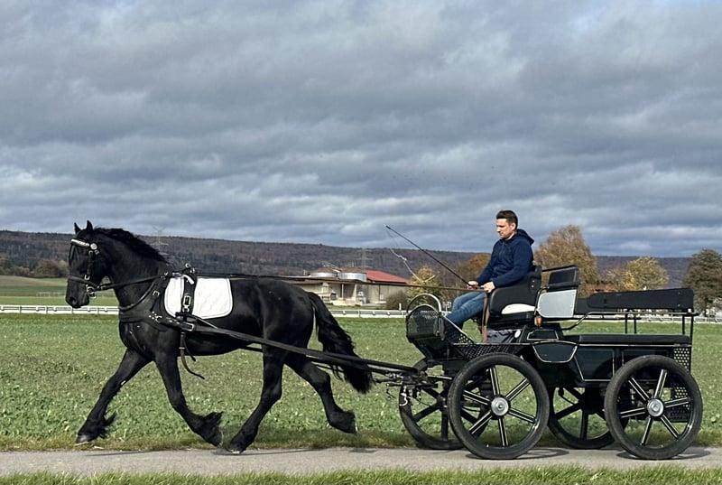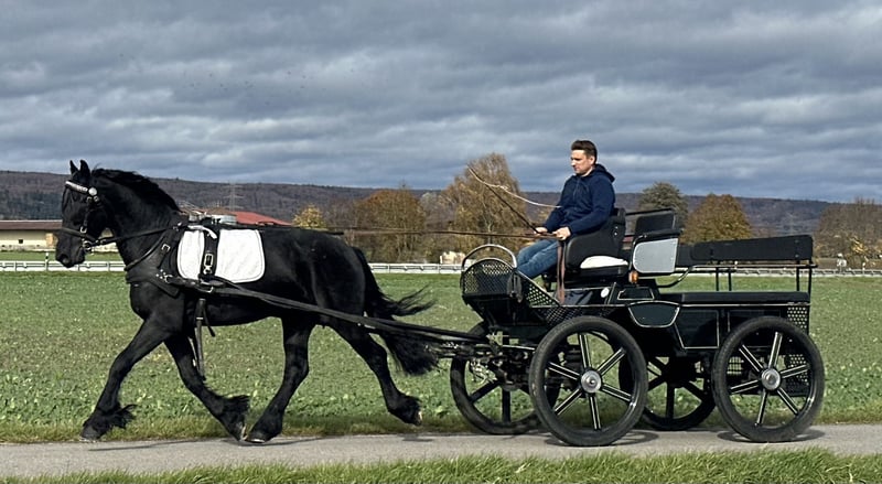 Here you see a fantastic gelding who is already experienced in single and pair driving on the road, as well as ridden in the arena and on the trail.