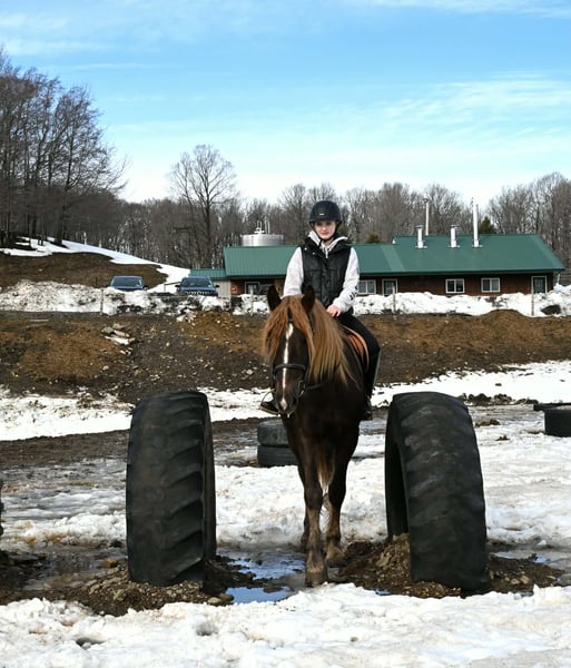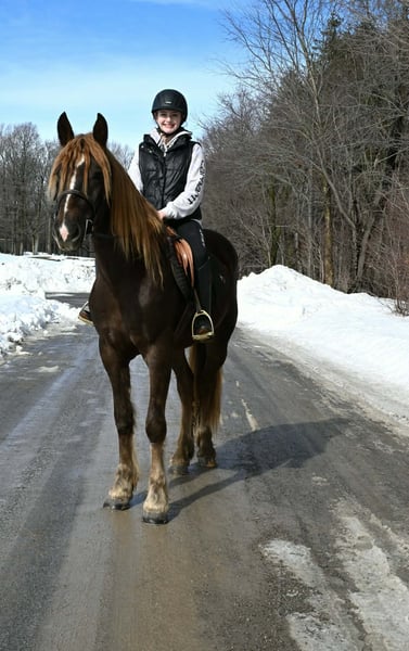 "AVAILABLE ON ONLINE HORSE AUCTION AT www DOT PlatinumEquineAuction DOT com BIDDING OPEN NOW thru SUNDAY | MARCH 8TH! *Final price will be determined on auction site* CONSIGNOR CONTACT INFO: Wolcott's Versatility Horses and Training 585-734-0169 LOCATION: Warsaw, NY ** 2 𝑾𝑬𝑬𝑲 𝑮𝑼𝑨𝑹𝑨𝑵𝑻𝑬𝑬** Here is the Friesian sport horse gelding with the perfect hair, Fabio. Standing at 16/16.1hh and just 4 years old, he is a great size for everyone to enjoy. He knows his leads and can canter a nice circle in the arena. He is very soft in the bridle and has a natural self-carriage. Fabio’s ground manners are excellent; he will stand all day tied with no fuss. Around the farm, he has been exposed to various farm animals, tractors, 4-wheelers, and vehicles without any issues. Fabio will trail ride alone or in a group and go anywhere you point him. Fabio will cross logs, bridges, water, and anything else you may encounter on the trail without hesitation. We have put him through our obstacle course, and he easily passed everything! Fabio is traffic-safe and good with tarps, stock whips, and bridges. Fabio will definitely get you noticed out in public; he already gets compliments all the time. He rides in a plain snaffle and works off your legs easily. He has been ridden in English and Western and is the same horse every time you bring him out of the stall. Fabio has also been started over fences. Beginners and advanced riders have ridden him. Fabio stands well for the vet, clipping, and bathing. He sells 100% sound with no vices. We welcome you to come out to the farm and try him out. Contact Dayton at 585-734-0169 for more information on Fabio. Visit our website Wolcotts horses and training and follow us on Facebook!