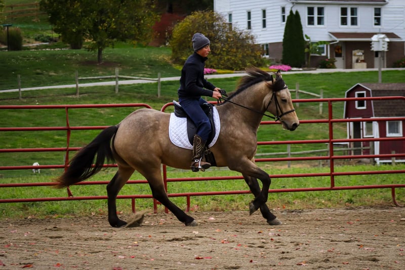 ⚜️ 𝓽𝓱𝓮 𝐇𝐨𝐫𝐬𝐞𝐦𝐚𝐧'𝐬 𝓢𝓱𝓸𝔀𝓬𝓪𝓼𝓮⚜️ Happening now thru MONDAY | DECEMBER 1st - Available EXCLUSIVELY on HorseBid's website! For more details and to register visit: www.Horsebid.com CONSIGNOR CONTACT: Trickling Brook Farm 330-390-3160 LOCATION: Sugarcreek, OH BREED: Friesian x Quarter Horse REGISTERED: Yes REGISTERED NAME: Maple Creek Lyle COLOR: Buckskin HEIGHT: 15.2 AGE: 4 GENDER: Gelding Lyle is a 4 yr old Buckskin Friesian x Quarter Horse cross gelding standing 15.2 hh tall. he was bought as a weanling and has been on the same farm for the last 3 yrs. Check this guy out! He’s a great color, size, and build. He is going well English or Western and rides walk, trot, canter under saddle. He responds to the leg and rides in a snaffle or a curb bit. Lyle is comfortable pushing cows and riding around the trails. He goes out alone and crosses logs, creeks, and more! He leads, loads, ties, and stands great for the blacksmith and saddling. Lyle is selling as a prospect and is ready to begin training for a specialized discipline. He can go any which way someone may like, but might be most suited for Working Equitation, trail riding, dressage, and more. He has a great temperament and wants to connect to his rider. He comes when called and is a pleasure to be around! Anyone is welcome to come check him out! Call 330-390-3160 FMI