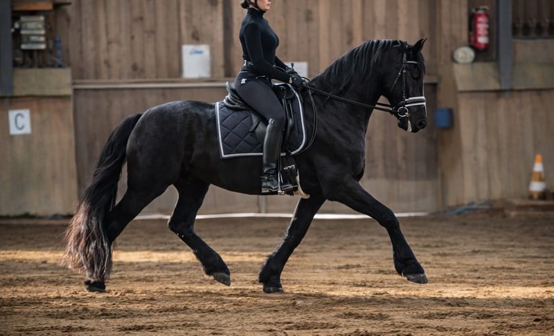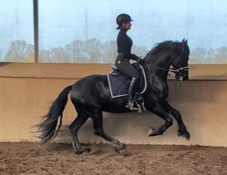 Młody fryzyjski wałach z dużym potencjałem