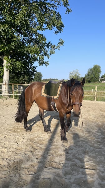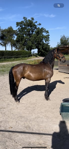 Te koop staat een Fries-Mix, geboren in april 2021. Hij is sinds hij 6 maanden oud was in mijn bezit. Hij is opgegroeid aan de Noordzee. Op tweeënhalfjarige leeftijd is hij zadelmak gemaakt, ook onder het zadel. Op drie jaar heb ik hem weer naar mij toe gehaald. We hebben veel grondwerk gedaan, hij kent de basisvaardigheden. Bit, hoofdstel, zadel, zadelpad, longeergordel, hij kent het allemaal en heeft nog nooit slechte ervaringen opgedaan. Ook het laden gaat zonder problemen; het duurt ongeveer 5 minuten voordat hij erin staat, maar uiteindelijk wint het voer altijd. Ook hier geen negatieve ervaringen. De enige slechte ervaring die hij heeft gehad, zijn koeien; hij vindt ze helemaal niet leuk en is er enorm bang voor. In het terrein gaat hij graag, maar het liefst samen met een tweede paard dat hem nog meer veiligheid geeft. Hij wordt momenteel ingereden, in stap en draf. Galop duurt nog (typisch Fries). Zijn vader is een goedgekeurde Fries uit Nederland, en zijn moeder is een Oldenburg-stute. Hij werd destijds verkocht omdat hij niet zwart werd. Wat zijn karakter betreft: hij is erg dominant, vooral in de kudde, en zeer trots. Heel knuffelig, geeft graag kusjes, superhongerig (neigt er gemakkelijk toe om dik te worden), een paard met veel karakter, maar ook een groot hart. Hij is bijna gezond, helaas heeft hij stofwisselingsproblemen en verhoogde leverwaarden. Verder is hij lichamelijk fit. Een aankoopkeuring is uiteraard mogelijk. Hij gaat alleen naar goede handen; het is geen noodgeval. Iemand die een geweldige vrijetijdspartner zoekt, die hem wil stimuleren en zelf wil opleiden. Bij serieuze interesse graag je telefoonnummer achterlaten, omdat ik de voorkeur geef aan een kort telefoongesprek. Geen handelaren, geen rijscholen! Hij gaat alleen naar privé-eigenaren die hem ook liefhebben. Ik zou het ook leuk vinden om daarna contact te houden. Daarnaast zou ik graag het voorrecht van eerste aankoop willen behouden, zodat hij niet een wanderpokal wordt. Ik heb dit paard vanaf jonge leeftijd, ik hoop dat dat begrijpelijk is :) Hartelijke groeten, ik kijk uit naar leuke reacties. Julia