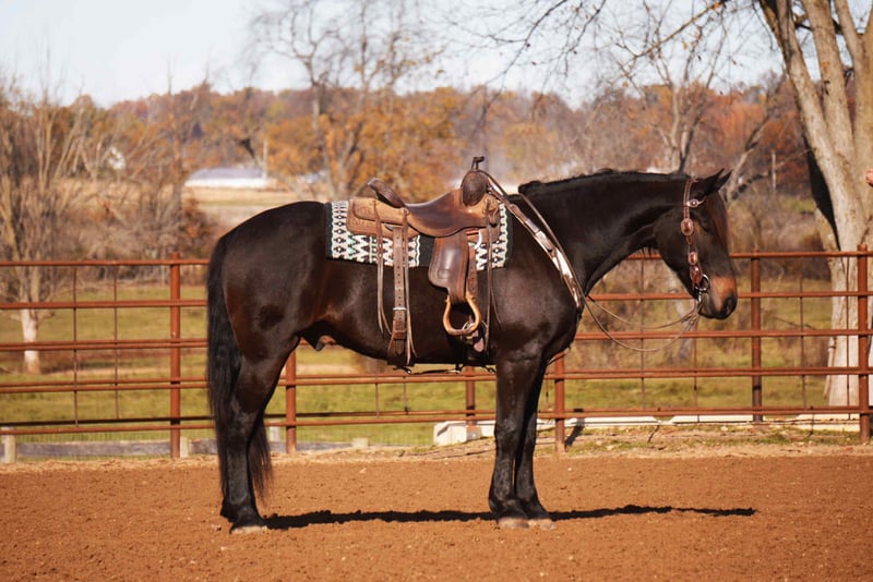 ⚜️ 𝓽𝓱𝓮 𝐇𝐨𝐫𝐬𝐞𝐦𝐚𝐧'𝐬 𝓢𝓱𝓸𝔀𝓬𝓪𝓼𝓮⚜️ Happening now thru MONDAY | DECEMBER 1st - Available EXCLUSIVELY on HorseBid's website! For more details and to register visit: www.Horsebid.com CONSIGNOR CONTACT: MW Equine Stables LLC 330-365-0236 LOCATION: Baltic, OH BREED: Friesian Draft Cross REGISTERED: No COLOR: Bay HEIGHT: 16 AGE: 5 GENDER: Gelding Jasper is a 5-year-old Draft × Friesan Gelding 16.H 1,100lbs. Where do you even start with one as cool as Jasper? He’s the total package—good-looking, versatile, and willing—ready to ride, drive, go English or Western… he truly does it all. Jasper has the quiet, easy-going nature of a Draft paired with the athleticism of a Friesian, making him a dream partner for almost any job. He willingly walks, trots, and canters balanced circles, and shows off a gorgeous extended trot. Recently started over jumps, Jasper took to it like he’d been doing it all his life—making him a great candidate for eventing, fox hunting, or simply being your steady, reliable family horse. Out on the trail, Jasper is solid and dependable for riders of all levels. He’s ponied youngsters on their first rides, crossed logs, ditches, and creeks without hesitation, and always keeps that same calm, head-level composure. Jasper also drives and has confidently navigated busy roads and heavy traffic. On the ground, he’s as sweet as they come—always at the gate to greet you, soaking up attention, and happy to be around people. He’s been exposed to dogs, cattle, and all the usual farm life without a fuss. He’s sound and clean, no vices, and excellent for shoeing, clipping, loading, and hauling. If you’re looking for a handsome, kind-hearted partner who can truly do it all, Jasper is ready to meet you. 🔔10 Day money Back Guarantee 🔔