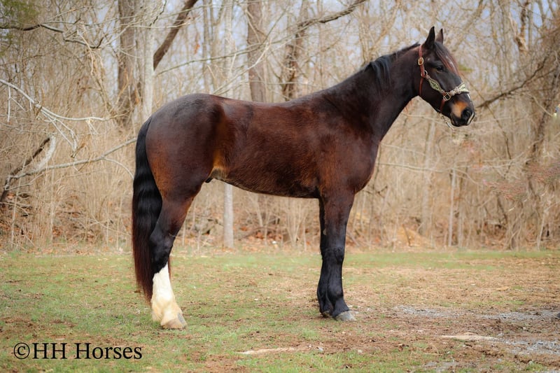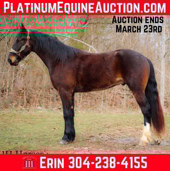 ONLINE AUCTION Place your bids at www.PlatinumEquineAuction.com Starting Bid $3500 Auction ends March 23rd, 2025 Need a new saddle? Check out White Rock Saddles on our website or Facebook! This is “MOONSHINE”, a real stylish, extra fancy moving BAY FRIESIAN QUARTER HORSE CROSSBRED gelding that is broke to ride and drive. This handsome guy stands 16 hands tall and is well proportioned with lots of eye appeal. He is 4 years old. He is versatile and has been ridden English and Western. He has been working in the stockyards to pen back cattle and he has been out on the trails. He is a super pleasant natured horse with lots of ride and a very floaty way of moving. He is talented, well trained, smart, and athletic. This gelding will cross water, he is traffic safe, and he will travel through rocky terrain without any hesitation. He will lope nice circles, catch his leads, stop easy, and back up. He stands to harness, hitch, tack, mount, and groom. He is quiet natured to be around and enjoys attention. This gelding has lots of class, ability, and sense. Located in Flemingsburg, KY. For more info or to make a Buy It Now Offer contact HH Horses Erin 304-238-4155 ONLINE AUCTION Place your bids at www.PlatinumEquineAuction.com Starting Bid $3500 Auction ends March 23rd, 2025 Need a new saddle? Check out White Rock Saddles on our website or Facebook!