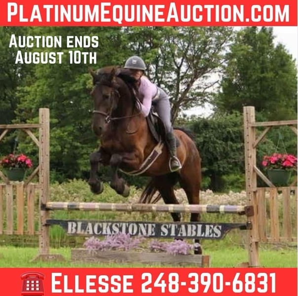 ONLINE AUCTION Place your bids at www.PlatinumEquineAuction.com Starting Bid $3500 Auction ends August 10th, 2025 Need a new saddle? Check out White Rock Saddles on our website or Facebook Meet Emerald. He’s a registered 4 year old, 16hh, Friesian Sport horse, gelding. Emerald has stellar bloodlines. He carries himself with a ton of presence and elegance. Emerald has excellent bone structure and conformation. He’s big, he’s quiet, he’s sensible, and he’s well rounded. Emerald is a total love to be around, he enjoys company, and soaks up attention. He’s no stranger to activities and kids! Emerald is broke to both ride and drive and is a very willing partner. He has been trail ridden and driven. He has been driven all over Michigan, Ohio, and Kentucky, and is traffic and road safe. He’s a calm natured horse. Emerald has been on moonlight rides camping trips thru the woods and water! He’s as sensible as you will find. Emerald has 3 beautiful gaits under-saddle and excellent breaks. He has a nice walk, an elegant and floaty trot, and rocking horse canter. This horse is absolutely stunning! The type that will steal your heart at first sight. He has an excellent foundation in dressage and has been started over fences. He is safe, sound, and extremely good looking! A hard kind to find. He will excel in dressage, lower level jumping, trail riding, and driving, or just as an all around family horse! His video tells his story well! Please call or text Ellesse Schwartz at 248-390-6831. Emerald lives in Howell, MI 48855 ONLINE AUCTION Place your bids at www.PlatinumEquineAuction.com Starting Bid $3500 Auction ends August 10th, 2025 Need a new saddle? Check out White Rock Saddles on our website or Facebook