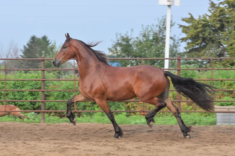 Licytacja online Złóż swoją ofertę na stronie www.PlatinumEquineAuction.com Minimalna cena wywoławcza 3500 USD Licytacja kończy się 2 listopada 2025 roku Potrzebujesz nowego siodła? Sprawdź ofertę White Rock Saddles na naszej stronie internetowej lub na Facebooku Donald to koniecznie trzeba zobaczyć, aby potwierdzić, dlaczego fryzyjskie konie od wieków są uważane za królewskie. To uosobienie elegancji i siły, gotowe do pokazów. Donald to 4-letni wałach fryzyjski z certyfikatem FBHR, o wzroście 16,2 hh, w rozmiarze 3 podeszwy i wadze około 635 kg. To znakomity kandydat na pokaz, mający wszelkie predyspozycje, by odnosić sukcesy w konkurencjach ujeżdżeniowych. Donald miał okazję zapoznać się z różnorodnymi widokami na szlakach, przeszkodami na arenie, a także z zgiełkiem życia w małym miasteczku. Jest w pełni zsocjalizowany i gotowy do dalszego szkolenia. Został już wstępnie wprowadzony do ujeżdżenia i wykazuje naturalny talent. Jego ruchy są tak piękne, że nawet osoby bez dużego doświadczenia z końmi dostrzegają jego niesamowity potencjał. Donald był wielokrotnie jeżdżony zarówno w siodle angielskim, jak i westernowym, posiada solidne podstawy szkolenia w obu dyscyplinach. Uważamy, że czyni go to bardziej wszechstronnym i adaptacyjnym partnerem jeździeckim. Jest energicznym, aktywnym koniem, z imponującym, wydłużonym kłusem. Uważamy, że najlepiej będzie się sprawdzał u jeźdźca na poziomie średniozaawansowanym lub zaawansowanym, albo w parze z trenerem. Donald może także doskonale sprawdzić się u początkującego dorosłego jeźdźca, przy wsparciu trenera. Jego ojcem jest Zebb M, czysto urodzony fryzyjski ogier, a matka to klacz sportowa, w 50% fryzyjska, co czyni tego pięknego wałacha w 75% fryzyjskim koniem. Niezależnie od preferowanej dyscypliny – ujeżdżenia czy westernu – wierzymy, że Donald odniesie sukcesy zarówno w dressage, jak i western dressage. Przy odpowiednim szkoleniu może także rywalizować w skokach, eventing czy w konkurencji jazdy klasycznej. Donald dobrze radzi sobie w ruchu w ruchu ulicznym, nie boi się hałasu i zgiełku małego miasta. Bez problemu przechodzi przez wodę, z gracją pokonuje przeszkody, takie jak kłody czy powalone drzewa na szlaku. Był jeżdżony w otwartym i zamkniętym terenie, wśród dużych i małych zwierząt gospodarskich oraz drobiu, a także miał kontakt z dziką fauną na polach i szlakach. W arenie jeździ pewnie zarówno w hali, jak i na zewnątrz, z dużą pewnością siebie. Posiada imponującą zwinność i łatwo dostosowuje się do różnych rodzajów podłoża. Za każdym razem, gdy wsiadasz na niego, możesz oczekiwać tej samej, równej jazdy, ponieważ Donald jest bardzo konsekwentny, nawet po dłuższej przerwie. Jest uczciwy i nie ma obaw o szarpanie, skoki czy kopnięcia, nawet gdy jest w pełni energii. Jest dobrze wychowany i zachowuje się świetnie zarówno na padoku, jak i w stajni. Przy wypuszczeniu na pastwisko dobrze dogaduje się z innymi koniami i łatwo go złapać. Donald stoi spokojnie na uwiązie, na krzyżaku, jest uprzejmy dla kowala i weterynarza, łatwo go przyzwyczaić do czyszczenia i strzyżenia, a także idealnie stoi do siodłania. Spokojnie stoi podczas zakładania siodła, na ochraniaczach polo, a także przy podnóżku. Chętnie porozmawiam z Tobą lub Twoim trenerem, aby upewnić się, że Donald będzie idealnym partnerem dla Ciebie. Sprzedaję go z aktualnym negatywnym wynikiem testu cogginsa oraz badaniem przed zakupem wykonanym przez mojego weterynarza. Jeśli chcesz się spotkać z Donaldem lub masz pytania przed zakończeniem licytacji, proszę o kontakt z Edwinem Raberem pod numerem 319-283-0616. Lokalizacja: Fairbank, Iowa.
