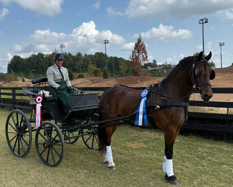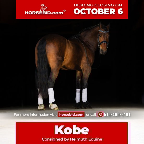 🍂 𝓐𝓾𝓽𝓾𝓶𝓷 𝑨𝑳𝑳 𝑺𝑻𝑨𝑹 𝑳𝑰𝑵𝑬𝑼𝑷 🍂 Happening now thru MONDAY | OCTOBER 6th - Available EXCLUSIVELY on HorseBid's website! For more details and to register visit: www.Horsebid.com CONSIGNOR CONTACT: Helmuth Equine 515-460-9191 LOCATION: Ames, IA BREED: Friesian Sport Horse REGISTERED: Yes REGISTERED NAME: Kobe COLOR: Bay HEIGHT: 14.3 AGE: 5 GENDER: Gelding Meet Kobe, a 5 year old registered Friesian Sport Horse gelding standing at 14.3 hh. He is the perfect horse for moving up the levels in eventing, CDE, dressage, jumpers, or simply enjoying time out on the trails! Kobe has the talent and versatility to go in almost any direction. He drives beautifully, both in a pair and as a single. He is uncomplicated in the bridle, stands quietly to hook, walks off nicely, and works wonderfully at the walk, trot, and canter in the carriage. Under saddle, he is just as reliable. Whether you ride him every day, once a week, or once a month, he’s never cold backed, cinchy, or difficult. You can hop on and ride straight out of the barn without lunging. He’s truly a point and go type of horse. Kobe learns quickly, show him something once, and he’s got it! He is very willing, eager to learn, and above all, wants to be your partner. He has plenty of go, yet is safe and steady enough for anyone to ride or drive, making him a trustworthy choice for both beginners and experienced horsemen. This summer, Kobe competed in numerous dressage and jumping shows, most recently at the Tryon International Equestrian Center, where he won the Prelim Single Horse Class, winning 2 out of 3 phases. If you’re searching for the ideal size horse, one that won’t intimidate riders in the dressage arena, will shine in combined driving or pleasure shows, and still make an incredible trail partner Kobe is the one for you.