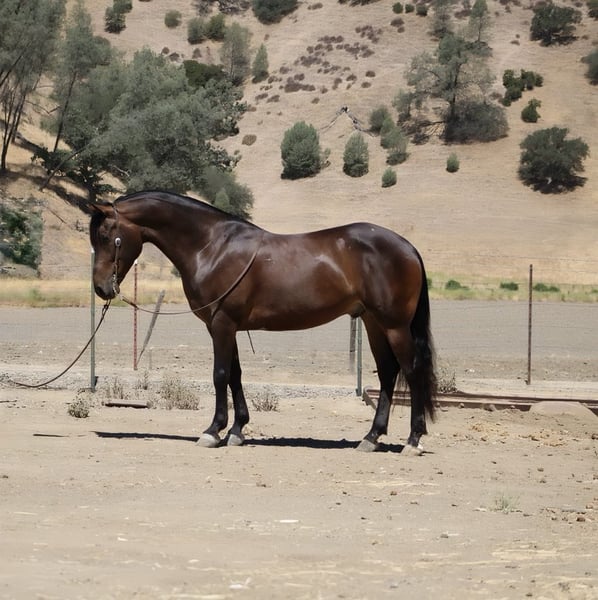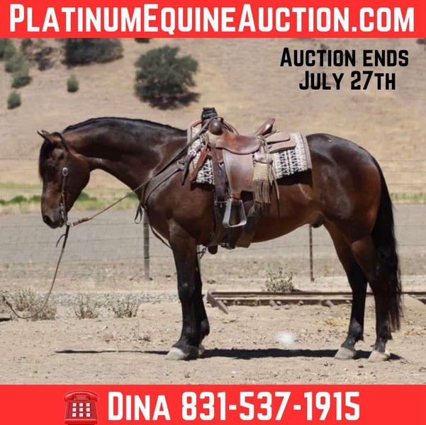 ONLINE AUCTION Place your bids at www.PlatinumEquineAuction.com Starting Bid $3500 Auction ends July 27th 2025 Need a new saddle? Check out White Rock Saddles on our website or Facebook Meet Echo, the stunning Friesian/Appaloosa cross that turns heads everywhere he goes! Echo is a striking leopard blanket bay with varnish and bold black spot and he is a true living masterpiece. At 5 years old and standing 15.1 hands tall, he has the kind of presence and elegance that’s truly unforgettable. His natural headset, fluid movement, and soft, supple feel make him a dream to ride in the arena. He lopes correct, easy circles, has a smooth stop, and backs up effortlessly. Echo is more than just looks—he’s confident, calm, and extremely well-rounded. He’s been exposed to busy streets, parades, flags, tarps, giant balls, and obstacle courses—and takes everything in stride without hesitation. On the trail, he’s sure-footed crosses water, logs, and tough terrain like a pro. He has also been used around the ranch. With his unique style and fluid movement, Echo would look absolutely stunning in English tack and could easily transition to English disciplines. Echo also has a fun, personality that makes him a joy to be around. He clips, ties, and bathes with ease. Whether you’re looking for a trail partner, arena star, or all-around best friend, Echo is the kind of horse that brings joy to every ride. Located in Paicines, CA. For more info contact Dina with Longhorn Ranch 831-537-1915 with any questions. ONLINE AUCTION Place your bids at www.PlatinumEquineAuction.com Starting Bid $3500 Auction ends July 27th 2025 Need a new saddle? Check out White Rock Saddles on our website or Facebook