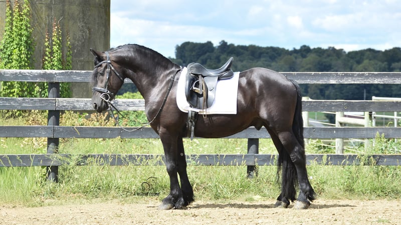 🍁𝒕𝒉𝒆 𝐅𝐀𝐋𝐋 𝑺𝒑𝒆𝒄𝒕𝒂𝒄𝒖𝒍𝒂𝒓🍁 Happening now thru MONDAY | SEPTEMBER 22nd - Available EXCLUSIVELY on HorseBid's website! For more details and to register visit: www.Horsebid.com CONSIGNOR CONTACT: Weaver Equine 330-641-6105 LOCATION: Fredericksburg, OH BREED: Fresian/Morgan REGISTERED: No COLOR: Black HEIGHT: 15.1 AGE: 5 GENDER: Gelding Beautiful 5yr old Friesian Cross gelding. Well broke to ride and drive. Rides both English and western disciplines. Amazing arena horse! Lopes a circle nicely. Picks up walk, trot, canter easily. Leg yields. Does great on obstacle courses. Stands well to mount. Stands nicely at a mounting block. Stops and stands when asked. Picks up both leads correctly. Blackjack would make a super nice dressage/eventing horse. Blackjack has also been used out and about. He has been on trails. He will cross creeks and step Over logs with ease. He does fine When out in groups. He conquers the hills easily as well. He has also been used out on the roads, in the carriage and under saddle. He will stop and stand well at stop signs. This pretty gelding also has amazing ground manners and has the sweetest personality. He is easy to catch in the stall. Ties well on a lead line, in the Crossties and ground ties as well. He is easy to handle as well. He will stand well to groom, tack, for the farrier etc. He will pick his feet nicely. Does Fine with fly Spray. Trailer loads well. He has a super sweet attitude and loves attention! 100% sound.