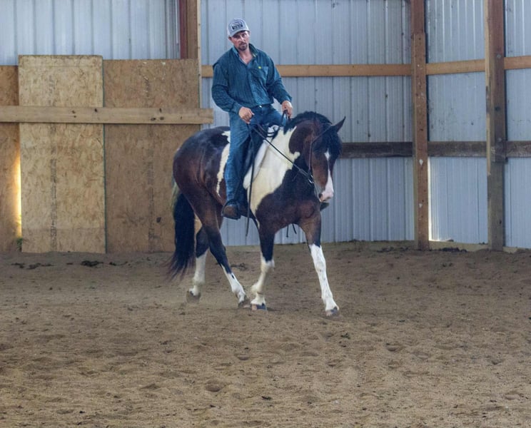 ONLINE AUCTION Place your bids at www.PlatinumEquineAuction.com Starting Bid $3500 Auction ends July 27th 2025 Need a new saddle? Check out White Rock Saddles on our website or Facebook Frito comes with beauty, brains, and versatility this exceptional Friesian paint cross gelding checks all the box’s! At just 5 yrs old Frito takes everything you throw at him in stride with a yes ma’am attitude. Standing 15.2 hands tall He’s smooth-moving with great transitions, knows his leads, and has a lovely headset in both English and western riding. Frito has been ridden in the arena, out on trails with plenty of outside miles under his belt! He loves water, good with traffic, and around dogs, cattle and big farm machinery! Goes through the obstacle course an will carry the flag. He can live outside or be stalled and gets along with others well in a heard setting. He ties, cross ties, bathes, clips, loads and hauls great. He is UTD on all cares including dental, coggins and farrier. He is 100% sound, clean legged, great feet, and blemish free. Located in Bloomfield Iowa with Nationwide hauling assistance available. Please feel free to reach out with any questions to Nicole Clark 563-608-1061. ONLINE AUCTION Place your bids at www.PlatinumEquineAuction.com Starting Bid $3500 Auction ends July 27th 2025 Need a new saddle? Check out White Rock Saddles on our website or Facebook