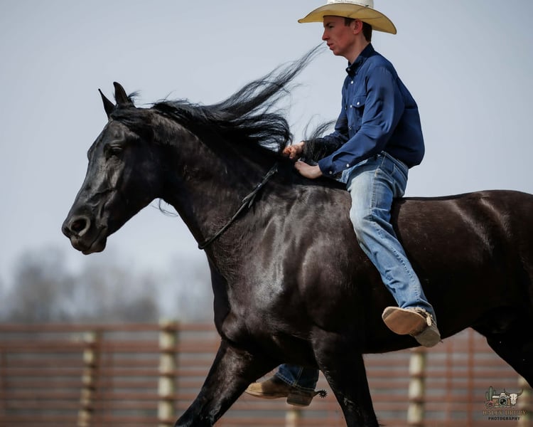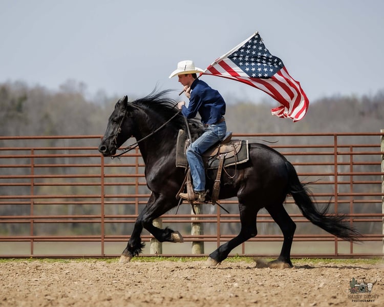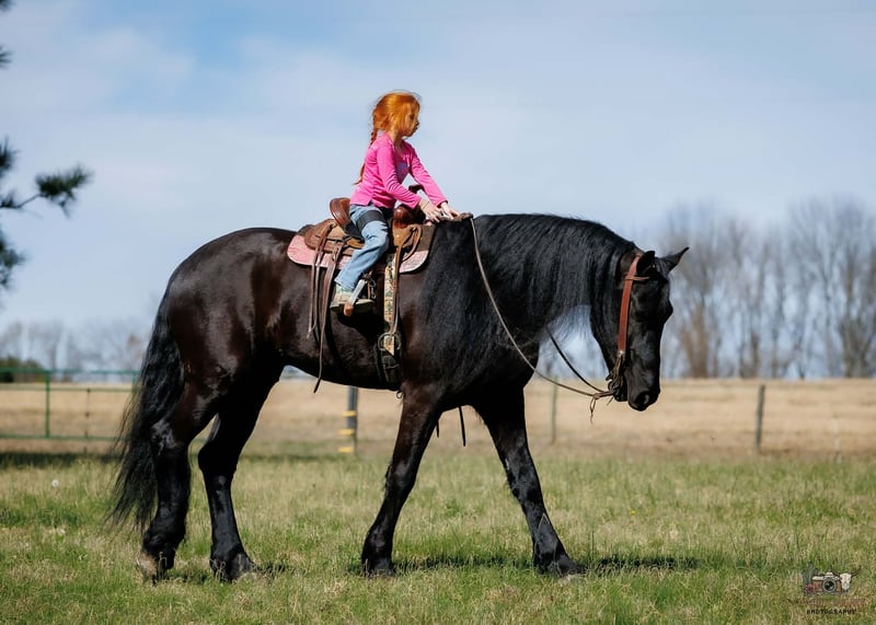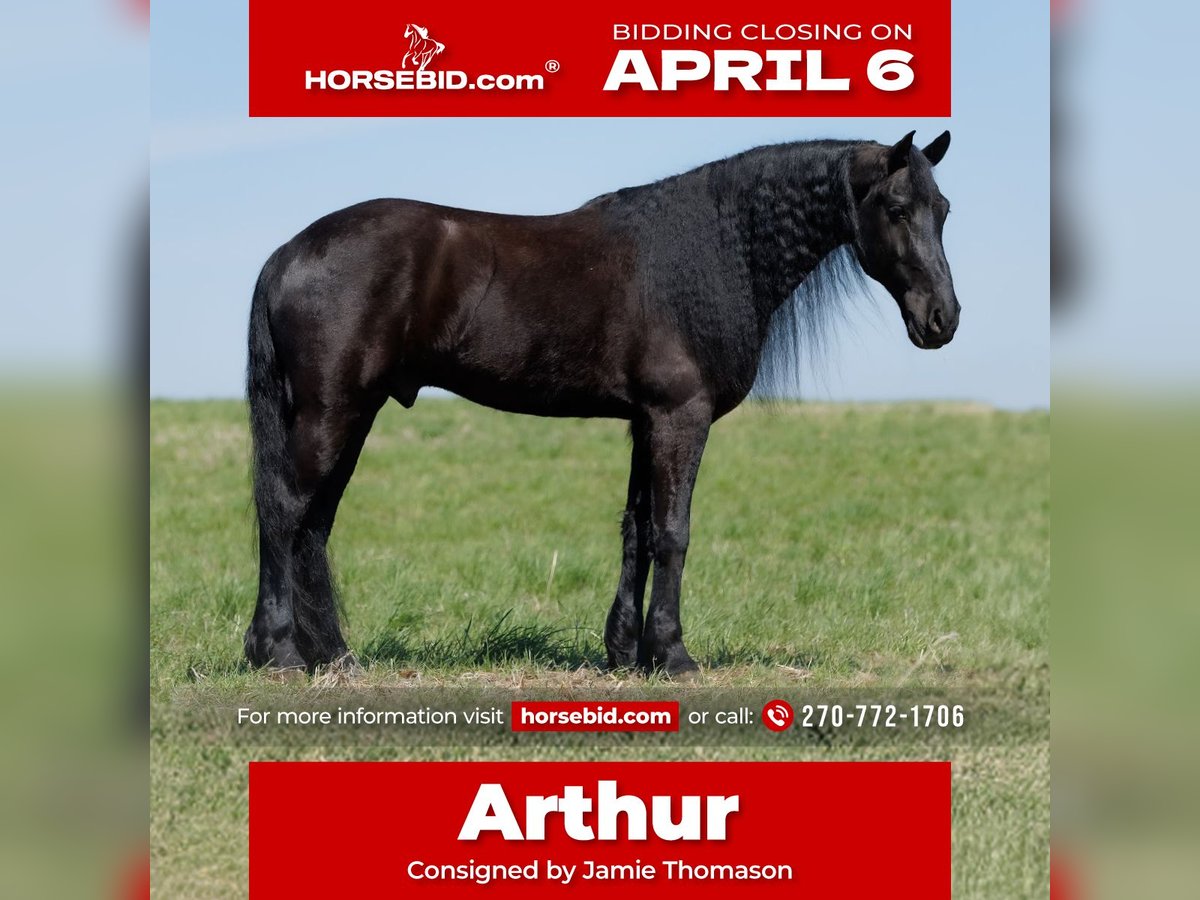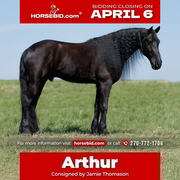 🌟𝑨𝒑𝒓𝒊𝒍 𝐀𝐋𝐋 𝐒𝐓𝐀𝐑 𝐋𝐈𝐍𝐄𝐔𝐏🌟 Happening now thru MONDAY | APRIL 6th - Available EXCLUSIVELY on HorseBid's website! For more details and to register visit: www.Horsebid.com CONSIGNOR CONTACT: Jamie Thomason 270-772-1706 LOCATION: Auburn, KY BREED: Friesian/Percheron Cross REGISTERED: No COLOR: Black HEIGHT: 16.2 AGE: 6 GENDER: Gelding Kind, quiet, and exceptionally dependable. The kind of horse that gives you confidence from the very first ride! Family friendly & lesson program suitable. Arthur is a 6yr old, Friesian/Percheron Cross gelding, standing 16.2 hands. Arthur is pleasure to own. Very personable, patient, and well mannered. He’s happy to greet you at the gate. Enjoys countless grooming sessions. A horse that’s just easy to love! Arthur is very well trained, proven safe, and continues to be enjoyed by a variety of riders. Comfortable at the walk, trot, and canter with smooth, easy transitions. Travels both directions on the correct lead, moves off leg pressure, pivots, and two tracks. He has been trained to “pick you up” at the mounting block & will lay down from the ground or from his back when cued. Arthur can even be ridden completely tackless with leg/seat cues & voice commands! Arthur has traveled off property to various arenas & out on the trail. Drives both single & double, down the road & in to town. Easy to load & haul. He hacks out alone or in a group, and is not herd bound. Confidently crosses water, natural obstacles, sure-footedly navigates uneven terrain, goes up and down inclines, across bridges, & is traffic safe. Arthur remains the same reliable partner even with time off. You get the same horse every time you saddle him up. Whether you need a safe and steady partner for the kids, a dependable arena horse, or an honest trail companion, Arthur checks every box! Truly one of a kind, he offers the kind of heart, mind, and consistency that make him not just a horse, but a lifelong partner and a true friend. Arthur sells current on all cares. If you would like to meet Arthur or have any additional questions prior to making him a part of your family, feel free to reach out! PPE’s welcome & we can assist in arranging transportation to anywhere!