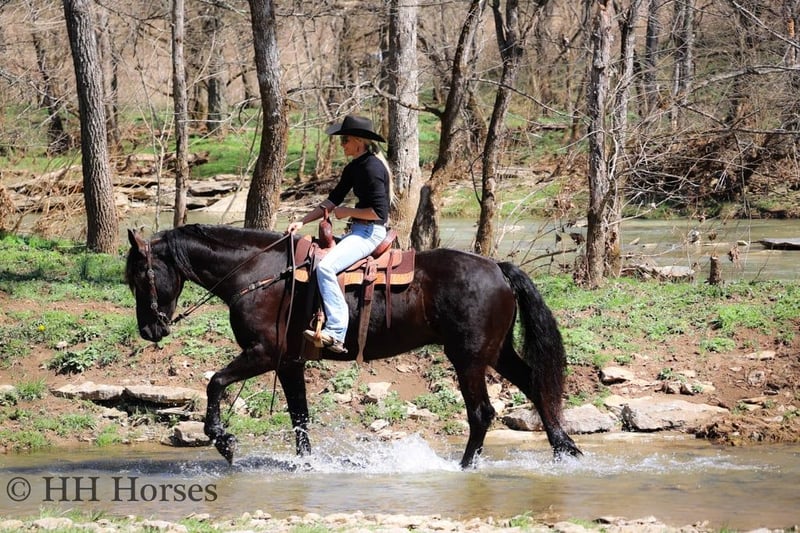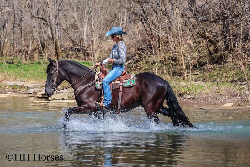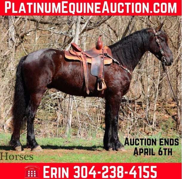 ONLINE AUCTION Place your bids at www.PlatinumEquineAuction.com Starting Bid $3500 Auction ends April 6th, 2025 Need a new saddle? Check out White Rock Saddles on our website or Facebook! This is “ARCHIE”, a super gentle, well trained, well behaved, and well mannered registered FRIESIAN SPORT HORSE GELDING that is broke to ride and drive. He stands 16.2 hands tall and is 5 years old. He is well bred. He can be ridden or driven by any level rider or teamster. He is obedient, calm, and rides relaxed on a loose rein. He lopes collected and cool and stops easily on whoa. He stands to harness, hitch, tack, mount, and groom. He can be hitched and driven by novice teamsters with no issues. He is a solid, seasoned, experienced, and easygoing gelding that anyone will love to be around and ride. He is smooth at the trot and canter, he walks out nicely and is patient. He likes attention and get along well with other horses. He is friendly, peaceful, and honest. Don’t miss out on a nice registered Sport Horse that anyone can get along with. Located in Flemingsburg, KY. Contact HH Horses Erin 304-238-4155 ONLINE AUCTION Place your bids at www.PlatinumEquineAuction.com Starting Bid $3500 Auction ends April 6th, 2025 Need a new saddle? Check out White Rock Saddles on our website or Facebook!