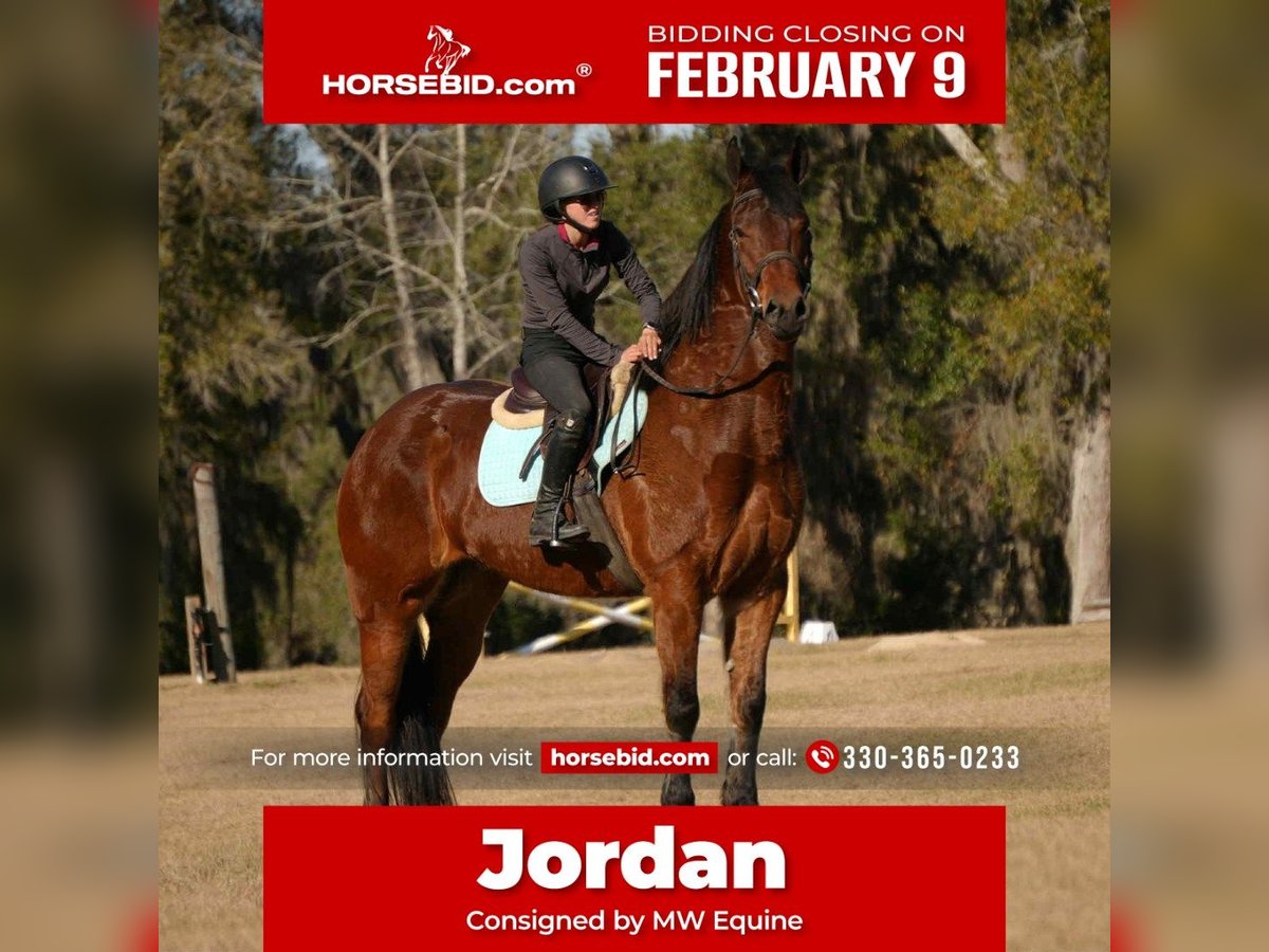 ❤️🔥𝑩𝒆 𝑴𝒊𝒏𝒆 𝐒𝐄𝐋𝐄𝐂𝐓❤️🔥 Happening now thru MONDAY | FEBRUARY 9th - Available EXCLUSIVELY on HorseBid's website! For more details and to register visit: www.Horsebid.com CONSIGNOR CONTACT: MW Equine 330-365-0233 LOCATION: Fresno, OH BREED: Friesian cross REGISTERED: No REGISTERED NAME: Jordan COLOR: HEIGHT: 16 AGE: 7 GENDER: Gelding Meet Jordan – Flashy 7-Year-Old Friesian Cross Gelding 16.0 HH | Bay | Athletic & Versatile Prospect Let me introduce you to the flashiest little bay horse around — Jordan! This handsome 7-year-old Friesian cross gelding stands a perfect 16 hands and is a true showstopper with his beautiful expression and presence. Jordan is a fun, versatile ride suited for an advanced rider or an intermediate adult looking for a flashy partner. He’s big enough for everyone to enjoy and has experience riding both English and Western. In the arena, he confidently walks, trots, and lopes circles with ease. He’s also proven himself to be a great partner around the farm and a fun trail horse. Jordan has been hauled to numerous arenas, trailers nicely, and stands well for the farrier. Out on the trails, he confidently crosses logs, navigates brush, and handles obstacles with a great attitude. Jordan has been introduced to cross country courses and absolutely loves it — showing confidence and enthusiasm. He would make a great prospect for someone interested in developing a cross country horse. Always up for adventure, Jordan enjoys trail rides, farm work, and relaxing Sunday rides down the back roads. He has an excellent foundation and has been under saddle for a few months now, riding very nicely. While he is not a finished horse, he is very well started and has tons of potential — making him a fantastic project for someone wanting to bring along a talented young gelding. Highlights: 7-year-old Friesian cross gelding 16.0 HH bay with flashy presence English & Western Walks, trots, and lopes in the arena Trail proven & obstacle friendly Introduced to cross country and loving it Hauled to multiple arenas Trailers well & stands great for the farrier No buck, bolt, or rear No bad habits Health: UTD on teeth, trims, Coggins, etc. Nationwide shipping available For more info, contact Marcus: 330-365-0233 Located in Fresno, Ohio