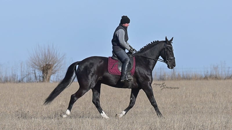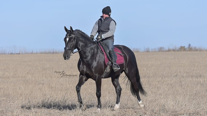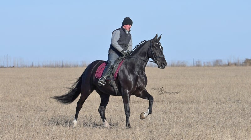 ONLINE-AUKTION Geben Sie Ihre Gebote ab unter www.PlatinumEquineAuction.com Startgebot 3500 $ Die Auktion endet am 4. Mai 2025 Brauchen Sie einen neuen Sattel? Schauen Sie sich White Rock Saddles auf unserer Website oder Facebook an! Captain ist ein hübscher, 6 Jahre alter, pechschwarzer, registrierter American Dutch Harness Wallach, der 16 Hände groß ist und eine unglaubliche Konformation hat. Er ist ein sehr vielseitiger Wallach, der sowohl englisch als auch western geritten wird und auch zum Fahren geeignet ist. Captain hat ein absolutes Talent im Springen und scheint es wirklich zu genießen, was ihn zu einem erstaunlichen Kandidaten als Hunter Jumper macht. Er entwickelt sich auch im Dressurreiten sehr gut und sieht unter einem Westernsattel für Western-Dressur großartig aus. Captain fühlt sich unter dem Sattel am wohlsten, und hier glauben wir, dass er weiterhin im englischen Reiten excelieren wird. Er hat eine wunderschöne Bewegung, die leicht ins Auge fällt. Captain wurde sowohl drinnen als auch draußen geritten. Er ist sowohl auf den Trails als auch in der Arena komfortabel. Er überquert Wasser, Baumstämme und geht durch Hindernisse. Er macht schnelle Fortschritte bei den Manövern unter dem Sattel. Selbst nach einer Pause kann Captain problemlos gesattelt und aufgesessen werden, ohne dass es zu Problemen kommt. Er geht gut mit Druck um und ist ein äußerst vielversprechender Kandidat für den Turniersport. Captain ist ein vernünftiger Wallach, der viel Freude beim Training bereitet. Er ist sehr umgänglich und leicht im Umgang am Boden. Captain ist auch großartig für den Schmied und lässt sich leicht beschneiden und beschlagen. Wenn Sie nach einem schicken Wallach suchen, um ihn zu zeigen oder zum Vergnügen zu reiten, ist Captain genau der richtige für Ihren Stall! Captain hat aktuelle Coggins und auch eine Gesundheitsuntersuchung (PPE) im Archiv. Wenn Sie Fragen haben oder ihn vor Ende der Auktion kennenlernen möchten, kontaktieren Sie bitte Edwin Raber unter 319-283-0616. Standort: Fairbank, IA. ONLINE-AUKTION Geben Sie Ihre Gebote ab unter www.PlatinumEquineAuction.com Startgebot 3500 $ Die Auktion endet am 4. Mai 2025 Brauchen Sie einen neuen Sattel? Schauen Sie sich White Rock Saddles auf unserer Website oder Facebook an!