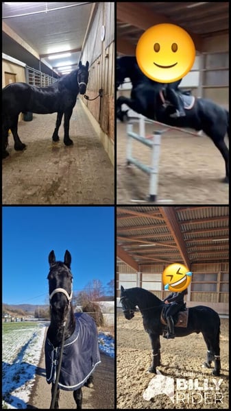 Mit schwerem Herzen muss ich mich wegen gesundheitlicher Gründe von meinem 10-jährigen Friesian-Gelding trennen. Er ist im Dressurtraining bis zur L-Dressur ausgebildet und springt auf gutem E-Niveau. Er ist im Gelände sicher und ein zuverlässiger Anhänger, regelmäßig geimpft und entwurmt. Er kann Zirkuslektionen, Auf- und Absteigen. Außerdem kennt er die Doppel-Longe und besitzt vollständige KFPS-Papiere. Die Zähne wurden im Februar gemacht. Größe 1,62 m. Zubehör kann gegen Aufpreis erworben werden.
