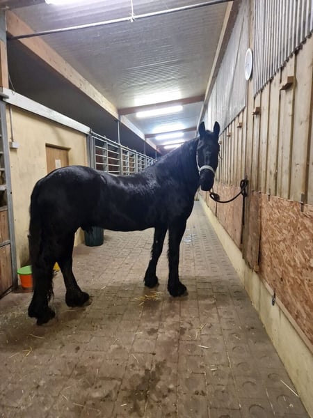 Met pijn in het hart moet ik mijn 10-jarige Friesian hengst van de hand doen wegens gezondheidsredenen. Hij is opgeleid in dressuur tot L-niveau en springt op een goed E-niveau. Hij is veilig in de cross-country en een goede loader, regelmatig gevaccineerd en ontwormd. Hij kan circuslessen doen, opstappen en afstappen. Hij kent ook de dubbele longeertechniek en beschikt over volledige KFPS-papieren. Zijn tanden zijn in februari verzorgd. Hoogte 1,62 m. Accessoires kunnen tegen meerprijs worden gekocht.