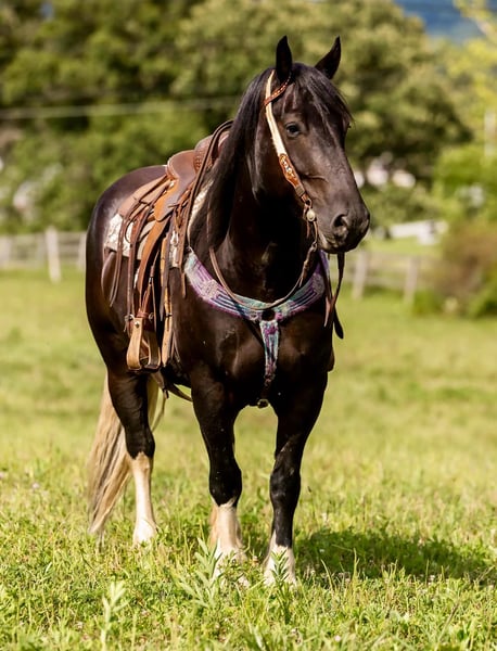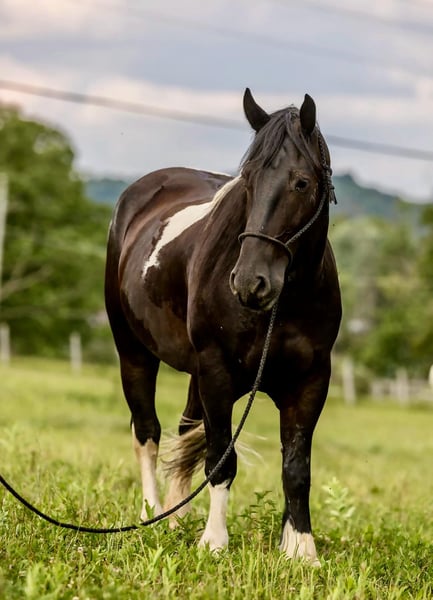 ONLINE AUCTION Place your bids at www.PlatinumEquineAuction.com Starting Bid $3500 Auction ends August 4th, 2024 Need a new saddle? Check out White Rock Saddles on our website or Facebook! DANDY’S DREAMER. Aka Amigo is a 15.2HH, 2018 Model registered Gypsy Horse (gypsy X friesian cross) gelding. Amigo is a solid and stout made horse with a lot of class and eye appeal, he’s got everything going for him, from his thick made build, to this great mind and bold colors, he’s sure to get you noticed anywhere you take him! Amigo may be pretty, but he sure has a lot more to offer than just eye appeal, Amigo classifies as a Dalmatian puppy who was VERY well socialized, he loves everyone, from the kiddos to the adults, he will be sure to try to win your heart over. Amigo may be big, but he rides sure footed and fancy moving like the small ones, he’s got a very nice flowy jog to him, and a nice big lope, with a slow going walk whether you want to hit the trails or the show ring ! Amigo is easy to catch, let me rephrase, he will catch you before you ever make it to him, he believes the best place in the pasture is right beside you ! Amigo truly believes people are his best friend, he loves being petted on and acknowledged. We’ve trail rode amigo everywhere, from big hills, to big green pastures he’s always been a solid citizen, but that’s not the best part, Amigo was originally a dude horse at the famous heart 6 ranch in Wyoming, he enjoyed toting dudes up and down the mountains and working for a living. Amigo has good solid clean legs and good feet. He will load, tie, and saddle with ease. If you’re looking for your next best friend, be sure to check amigo out, he will be sure to give you his entire heart! For more info contat Brandon Browning 859-462-1728 Located in Wallingford, KY. ONLINE AUCTION Place your bids at www.PlatinumEquineAuction.com Starting Bid $3500 Auction ends August 4th, 2024 Need a new saddle? Check out White Rock Saddles on our website or Facebook!