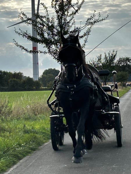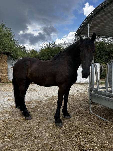Montado y conducido (en silla sencilla y doble), un compañero muy agradable, también apto para principiantes, muy dulce. Tiene un lomo típico de tipo Frisón. Documentos de ascendencia y pasaporte de equino disponibles. Para más información, por favor llame al teléfono 0172-6785115. Por favor, no envíe consultas por escrito, los correos electrónicos no serán respondidos.